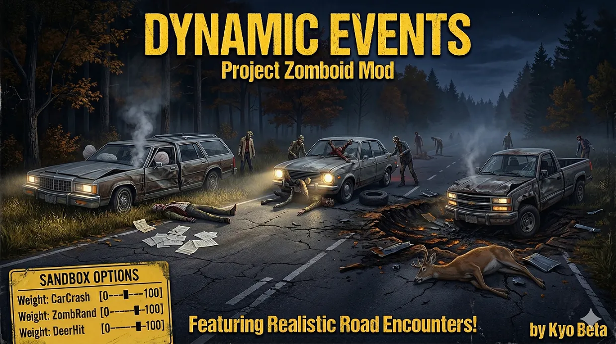 Bring life (and death) to the empty roads of Knox Country! This mod introduces a dynamic event system that randomly spawns accident scenes and special encounters on roads around the player, making the world feel truly lived-in and unpredictable.