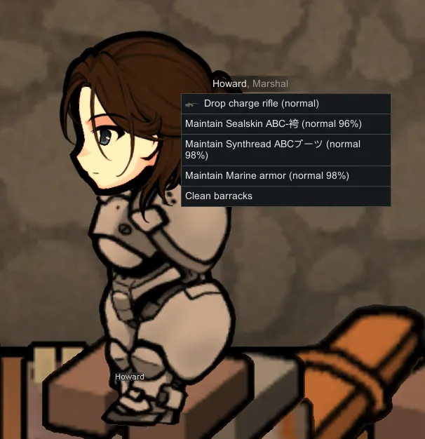 ポーン選択後、自分自身を右クリックで傷んだ装備品を手入れ選択できるようにしました。