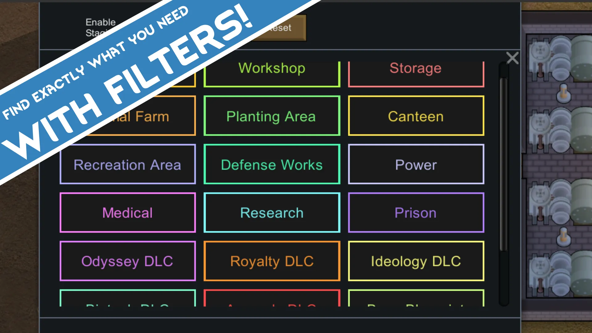 Comes with 101 highly practical blueprints, displayed by category and supported with a favorite function. You can browse blueprint information, check tech requirements, mod dependencies, and material needs, and click on images to zoom in for a closer look.