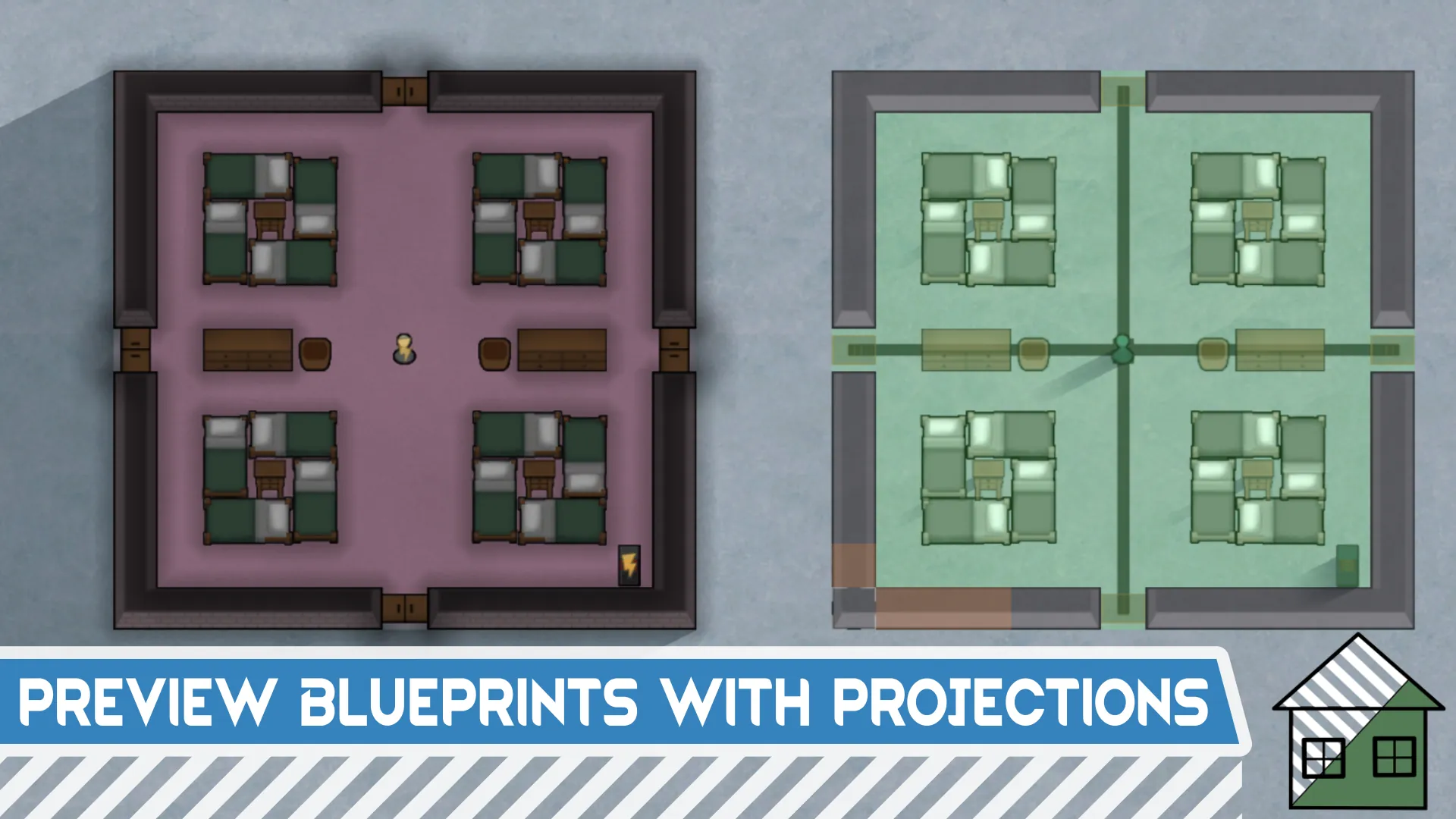 The projection layer is displayed independently without interfering with blueprint placement. You can place multiple projections on the map for planning; projections will show green when overlapping with existing buildings. Supports area-based projection deletion and projection switching.