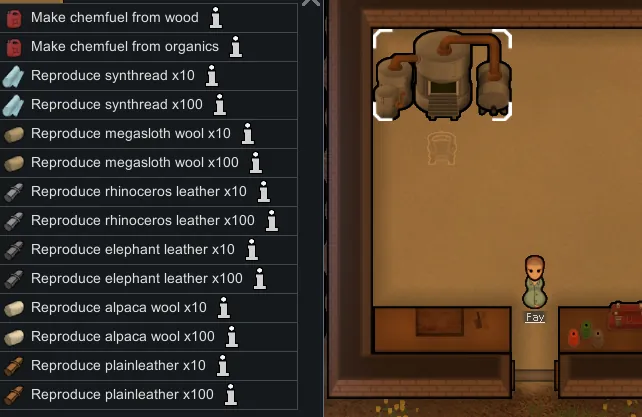 The reprocessing options provided by this mod are generally not quick. Additionally, the costs can be prohibitive: chemfuel and neutroamine are common ingredients, with plasteel becoming common at later conversions. Farming animals is likely a more efficient solution. However, for heavily industrialized colonies, this may be a good way of upgrading otherwise useless leathers and wools.