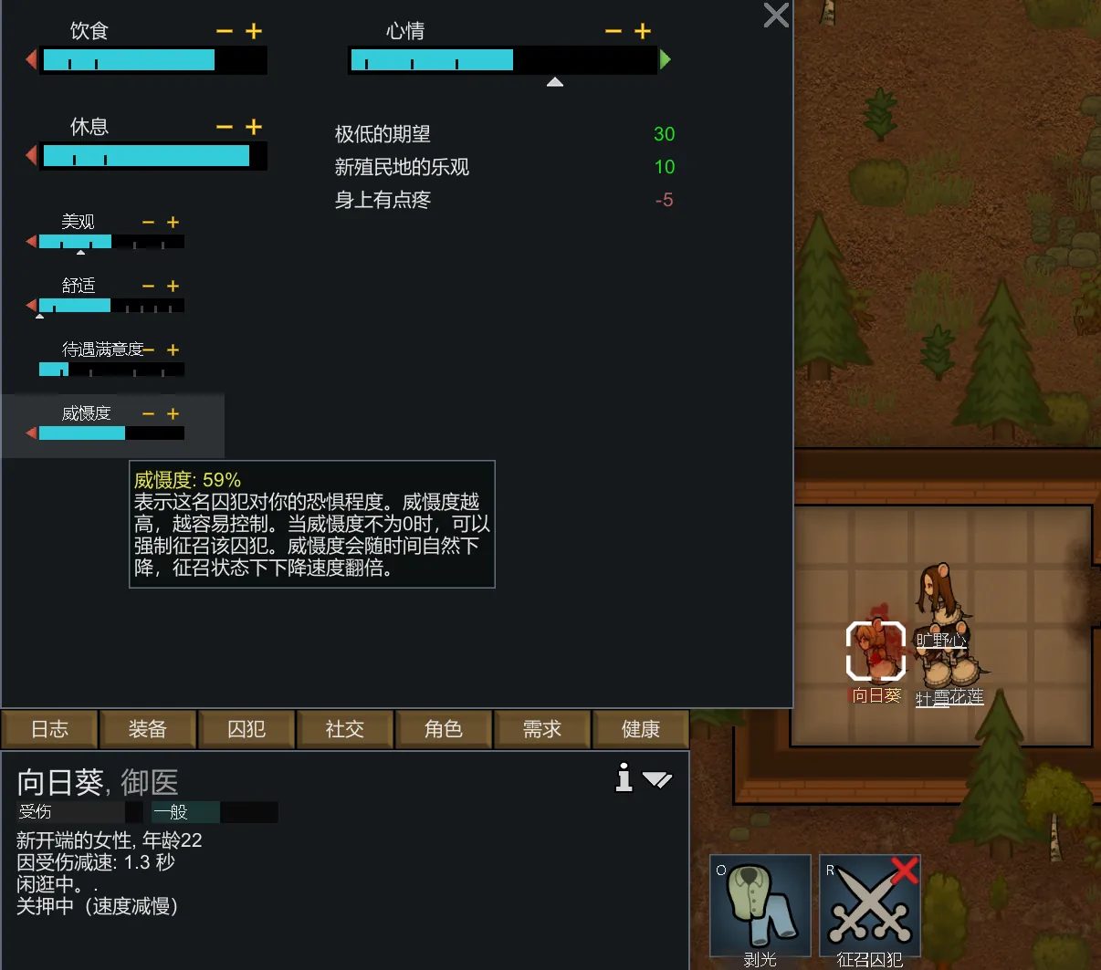 [*] [b]暴力获取控制权:[/b] 当你的殖民者殴打囚犯并造成伤害时,囚犯的“威慑度”会增加。