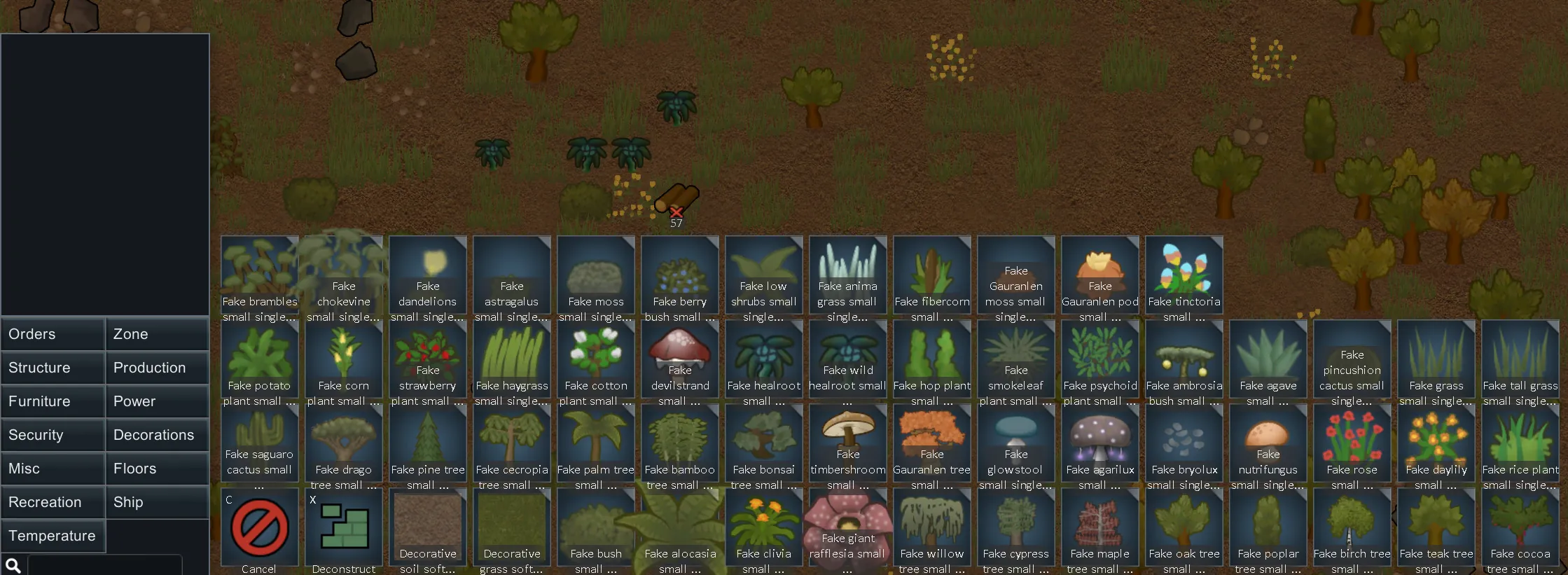 [b]Buildable soil, grass tiles. Buildable plants and trees. Used for decoration.[/b]