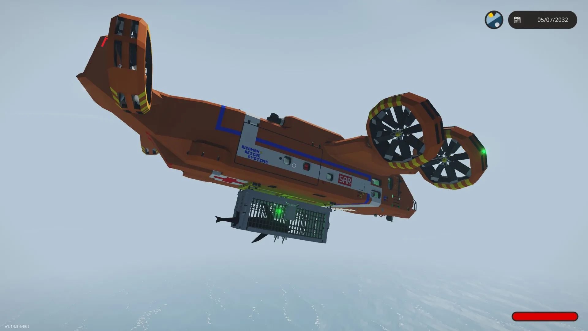 This cage can be used as a shark trap. Just strap yourself in as bait, deploy the trap and wait until a shark nears you. Trigger the trap to rotate yourself to safety and trap the shark. Have fun with your pet shark!