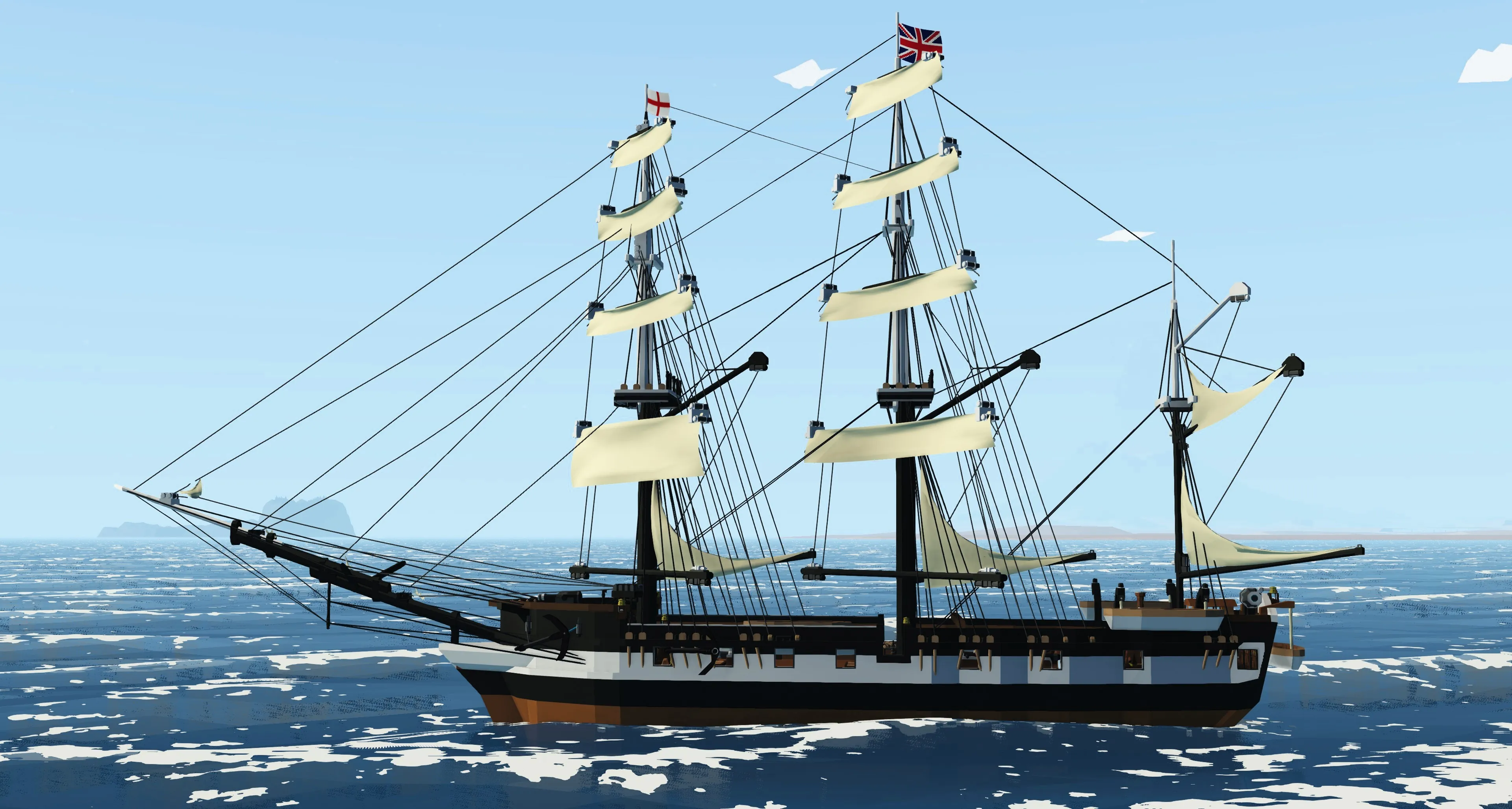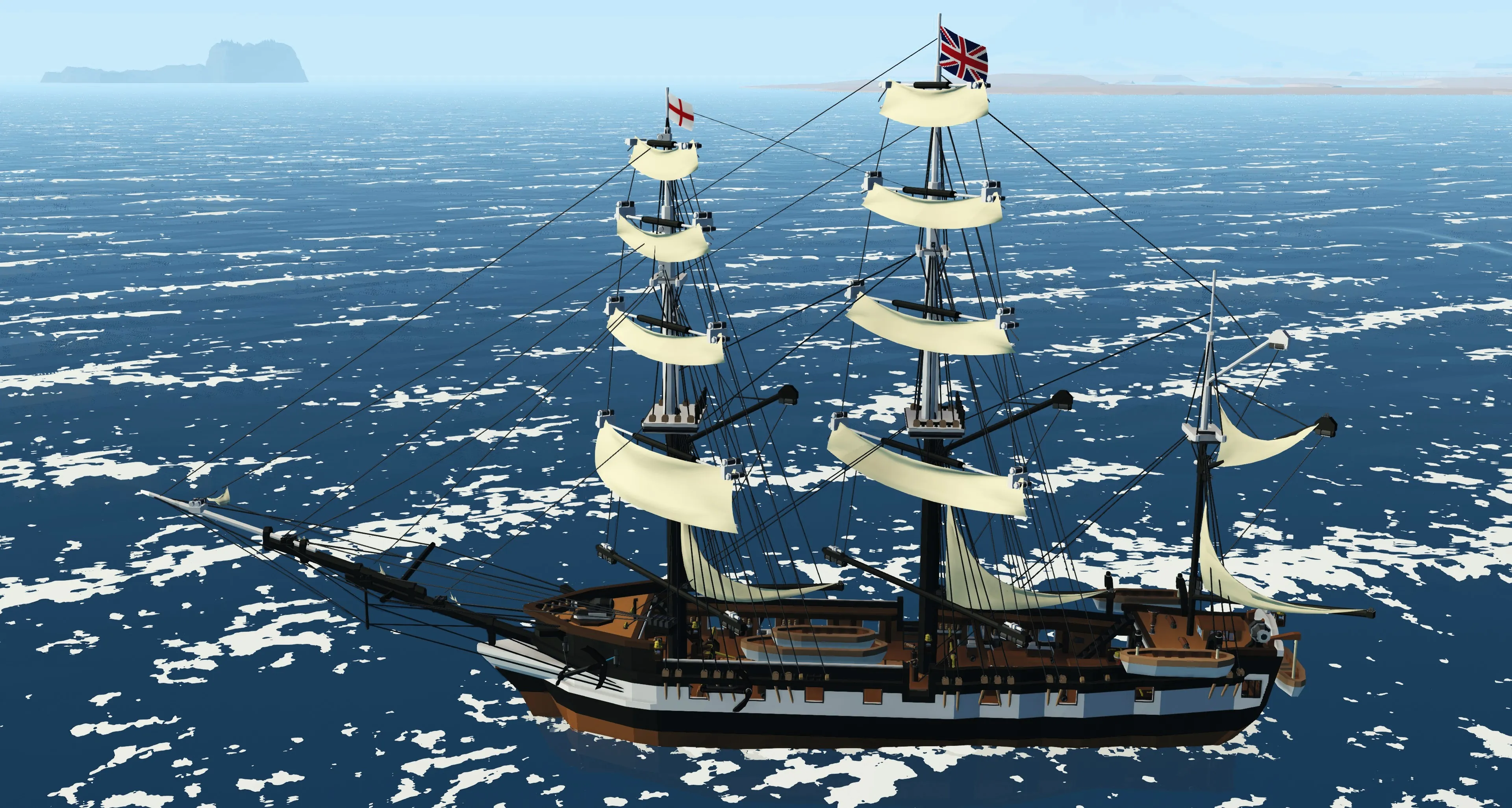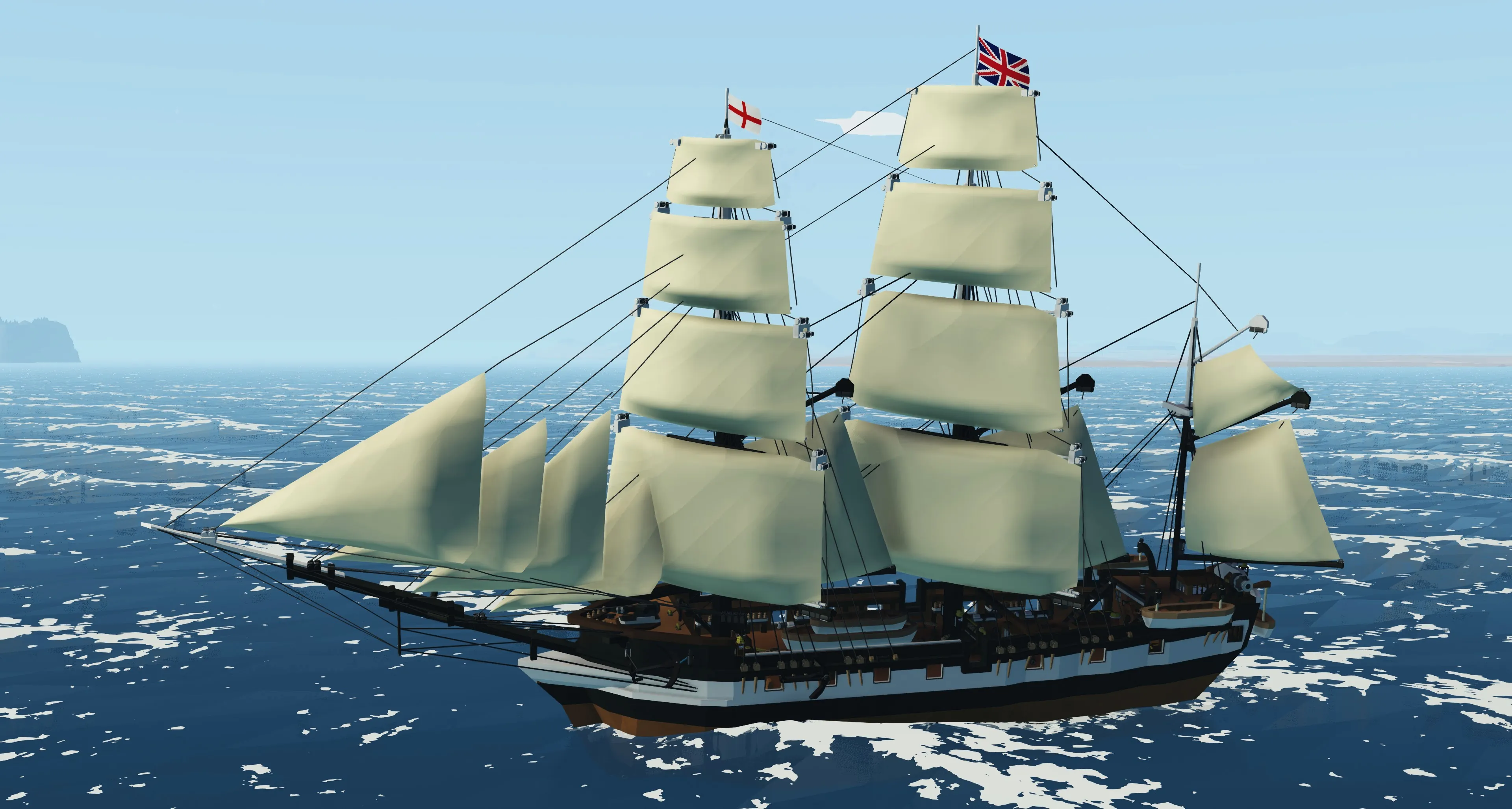 Press and hold down the number keys 1-4 to set each sail in turn, press 5 simultaneously to set all sails at once, and press 6 simultaneously to fold the sails.