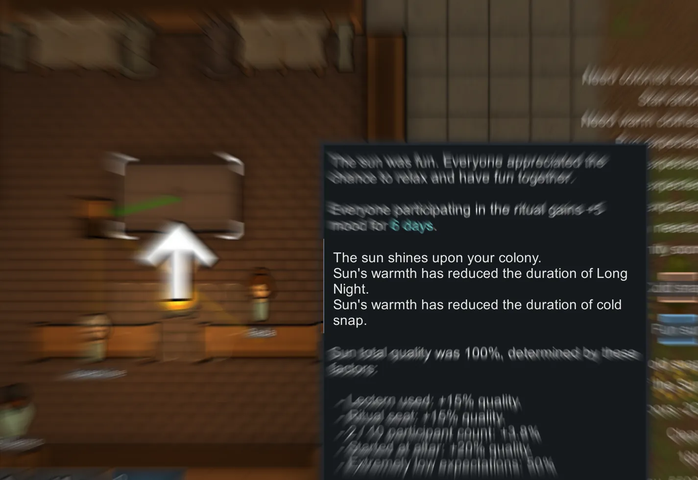 [*] halves/quarters the duration of remaining cold snap/long night(VEE) depending on the quality of the ritual!