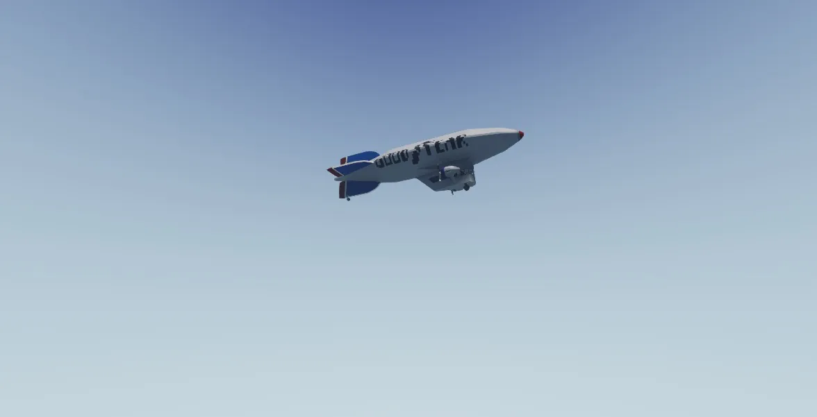 The only part that was particularly time consuming was painting "GOOD--YEAR" on the side & then jumping back & forth to paint it on the other side, this is my 2nd airship due to the amount of time it takes to make one. From a distance it is quite difficult to tell this is in Stormworks due to the polygons becoming blurrier!