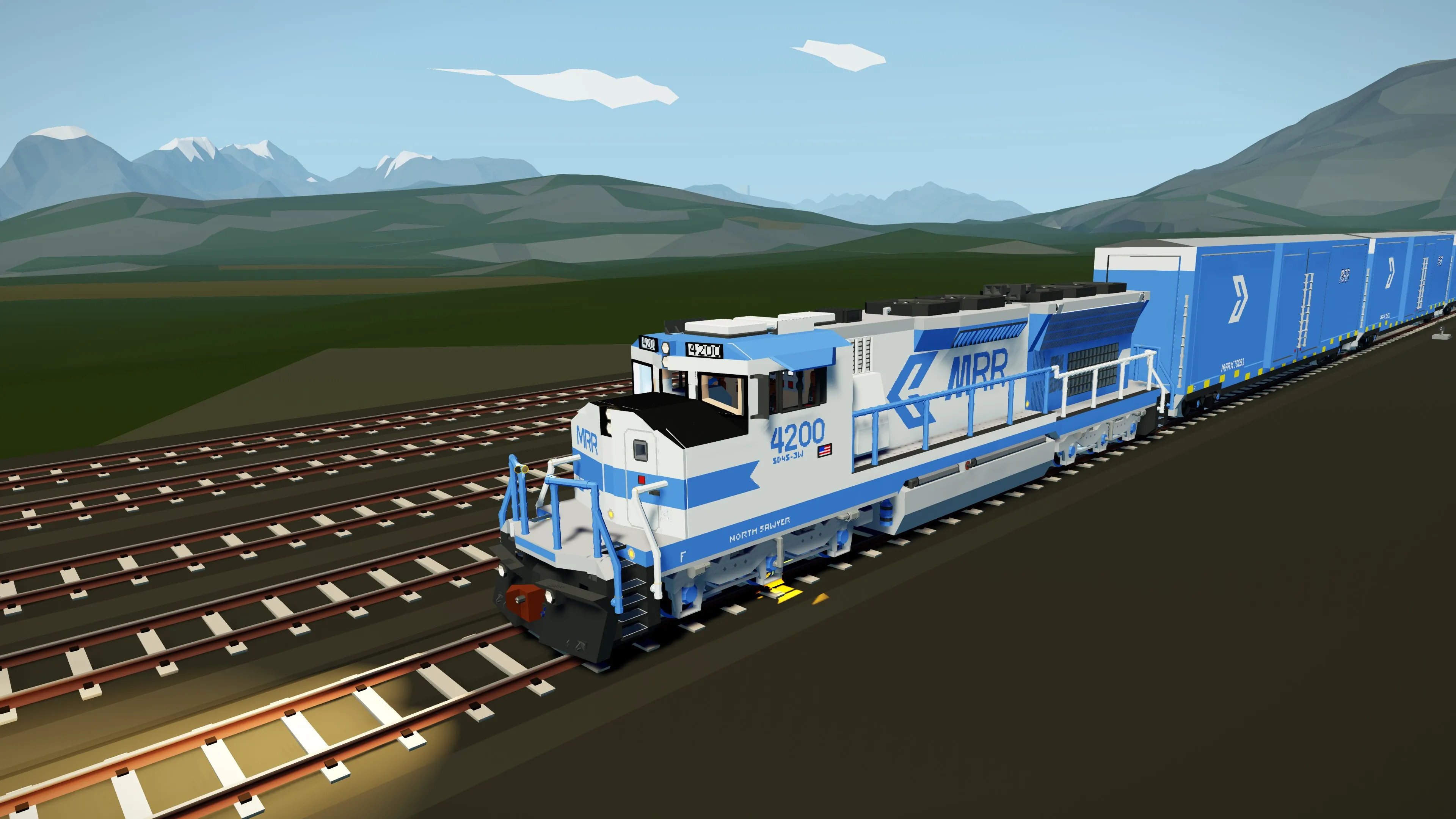 MRR 4200 - an EMD SD45, originally delivered as Donkk & Sawyer Railway #4000 in late 1966 - was the class leader for DSR's first-ever high-output locomotive fleet. 4000 and her 399 sister units would roam the DSR system alongside the preexisting SD40s occupying the 3600 class. As flaws with the 4000 class were discovered, they were one-by-one completely rebuilt to address their reliability issues. DSR re-designated the rebuilt engines as SD45Rs. 4000 was one of the last ones to be rebuilt, almost totaling her engine from crankshaft fatigue on her massive 20-cylinder engine. The only thing that prevented an engine failure was a swift shutdown, after the crew noticed a leak in the fuel tank.