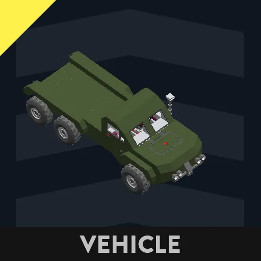 Its a Technical Truck Designed to be Reliable, Engine Selled, Fast and Eficcient the VUG 1 (Universal General Vehicle) is a Solid Chose for get cheap, simple and field reparable Vehicle, has 3 Gears, Torque Gear: 35 m/s Default Gear: 55 m/s and Reverse Gear that is the same as the default, I Designed This to be Cheapest As Posible and be able to Modify it A lot of Ways, Theres a lot of space in the interior to add a Second Seat and Composite, in the Back theres a Lot of Space to put Whatever you want, in My Case this is Commonly an ATGM, SPG or a Rocket Artilley Platform, I hope you like it and if you see any Error Type in the comments and i will Solve it :D