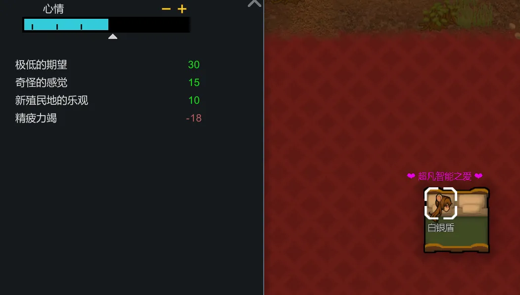 [] [b]💖 神之爱 (Divine Love)[/b]神明的爱抚慰人心。效果:瞬间填满目标的 [b]娱乐[/b] 和 [b]舒适[/b] 需求,并获得一个强力的心情加成(宣泄/神器情绪),持续一段时间。[i] 不需要伴侣,随时触发。[/i]