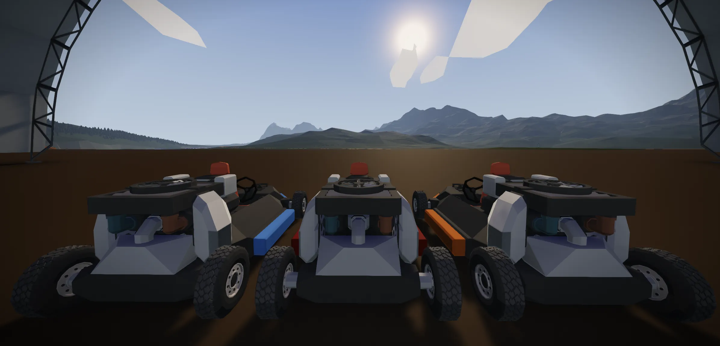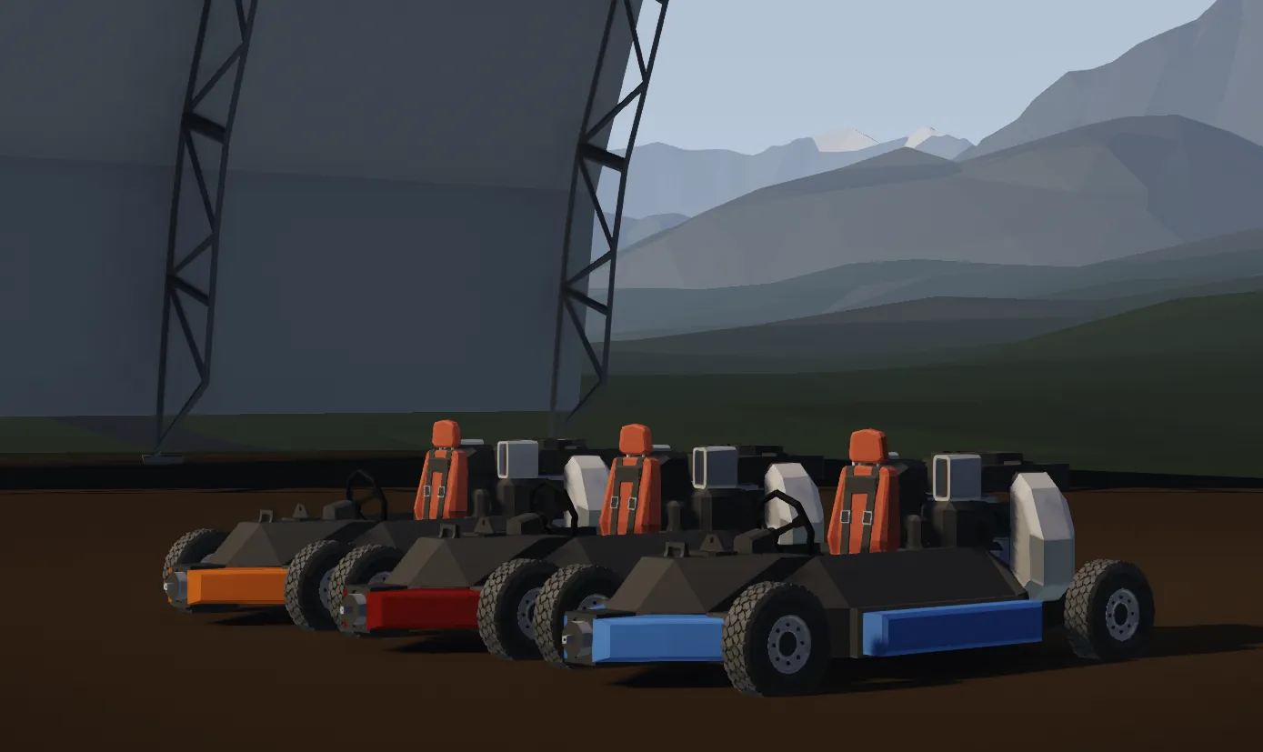 three go karts Engine idles at 5, revs at 30. realistic-ish: steering, acceleration, max speed fancy: torque vectoring