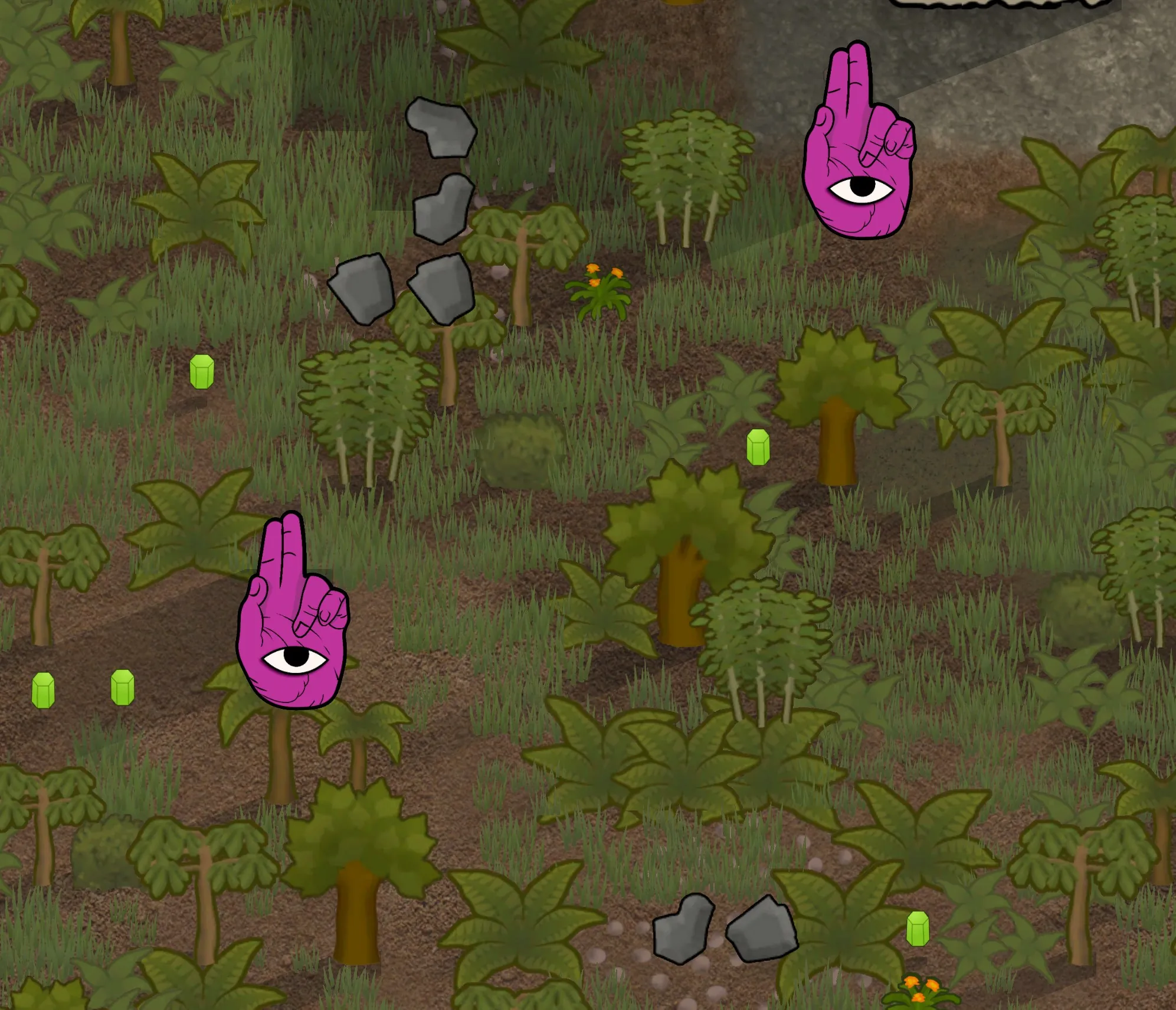 -Benediction Angels - Floating hands who shoot palladium orbs and transmute nearby flora into pulsating hexagonal columns of organic matter. Just like in the Bible.
