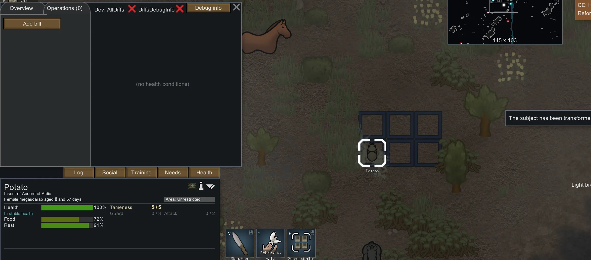 I add a special transformation insects for large animals like megasloths and thrumbos (Disabled in CE because Compatiblity)