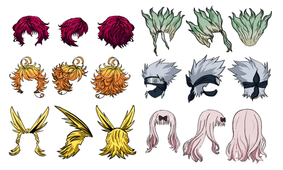 All character hairstyles were designed by the original manga authors/artists of the characters, not me.
