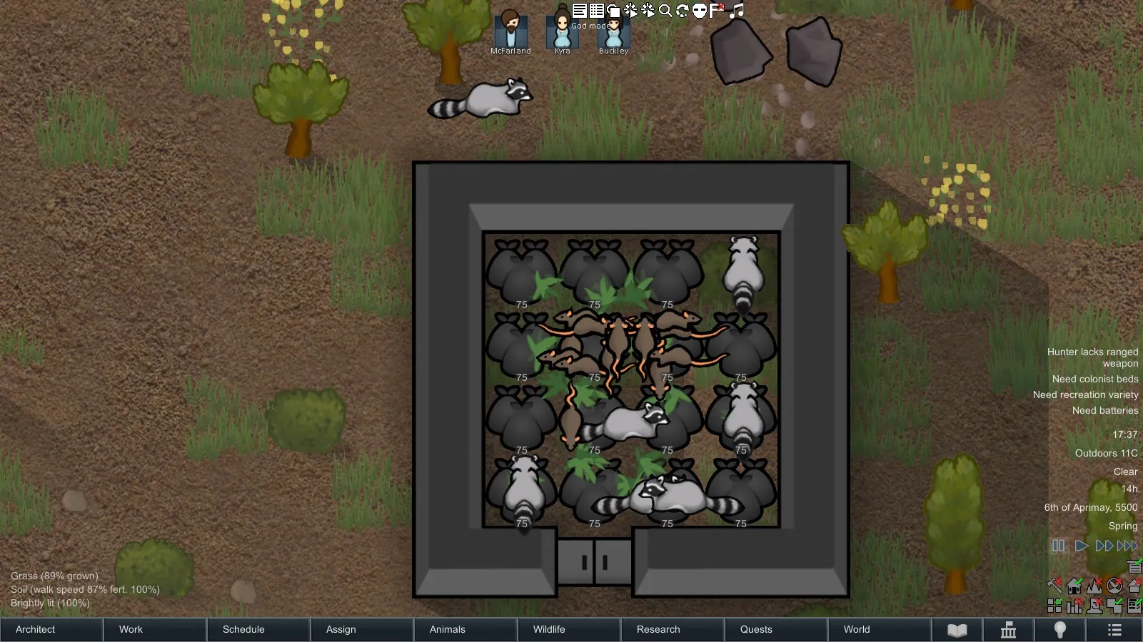 - Trash bags are now ingestible. They will only be eaten by humans in desperation, but are fair game for rodents and raccoons. Of course, eating rubbish will make colonists upset and sick (90% chance of food poisoning). Animals don't mind. Enjoy dumpster diving!