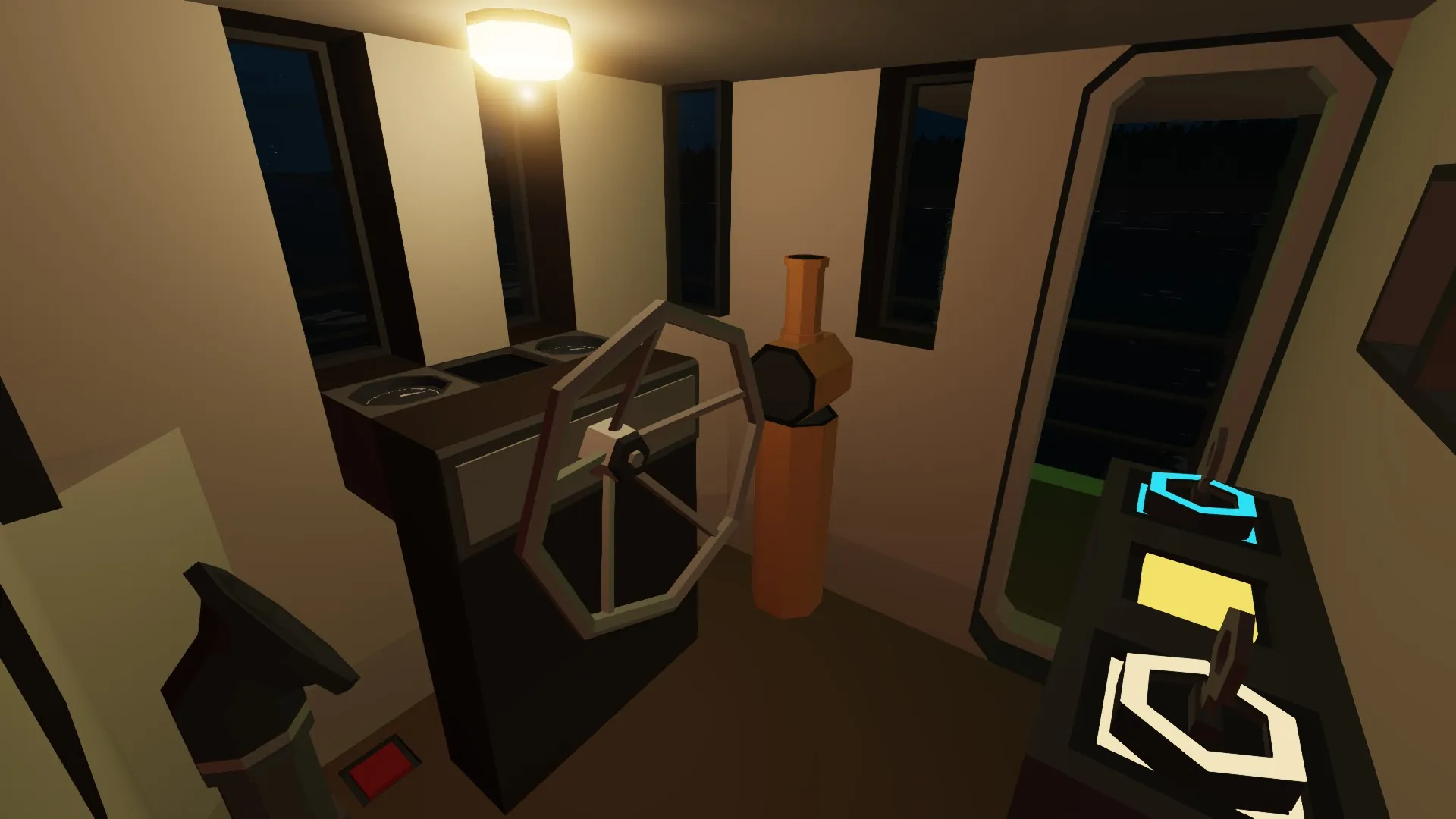 There will be an adequate button in front of the smokestack.
