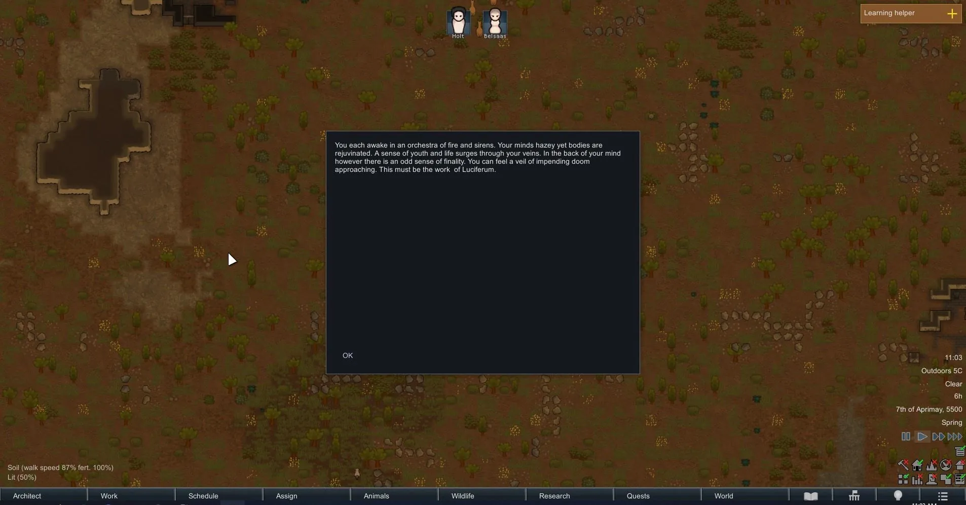 You've each been sentenced to death via exile for eating more than your "fair", if you can call it that, share of rations. Your are each stripped of your belongings and force fed Luciferium. Exiled to a nearby Rimworld, can you survive and, perhaps, strive?