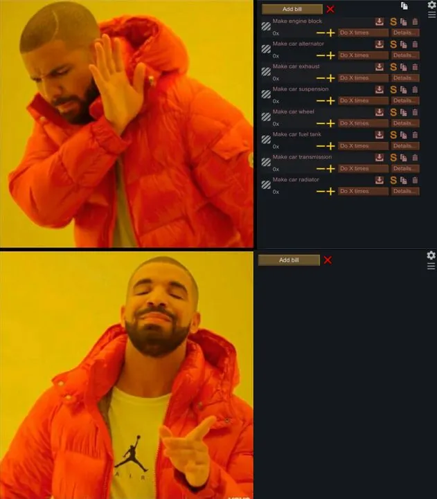 [*] Currently does nothing with [b][url=https://steamcommunity.com/sharedfiles/filedetails/?id=3520130671]Nice Nice Bill Tab[/url][/b]. To be exact, the mod doesn't add any buttons to the nice bill tab. To use the mod you would have to toggle the nice bill tab off, temporarily. There's a button for it in the bills tab.