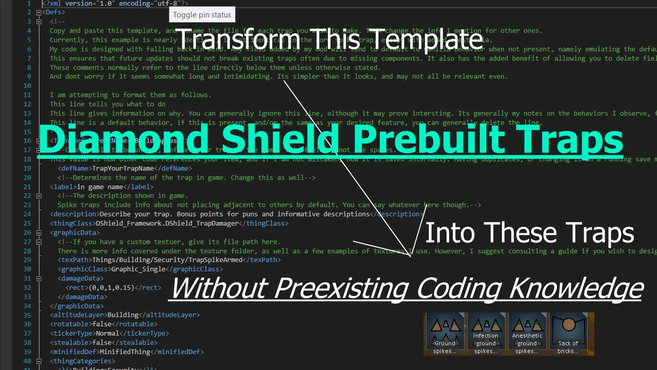 This features a couple of premade traps. These are a blunt trap called the sack of bricks, two spike traps, one of which is poisoned and the other is not, and a trap that inflicts burns. These are detailed below.