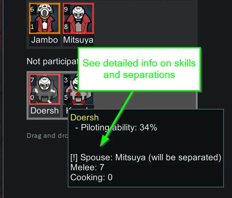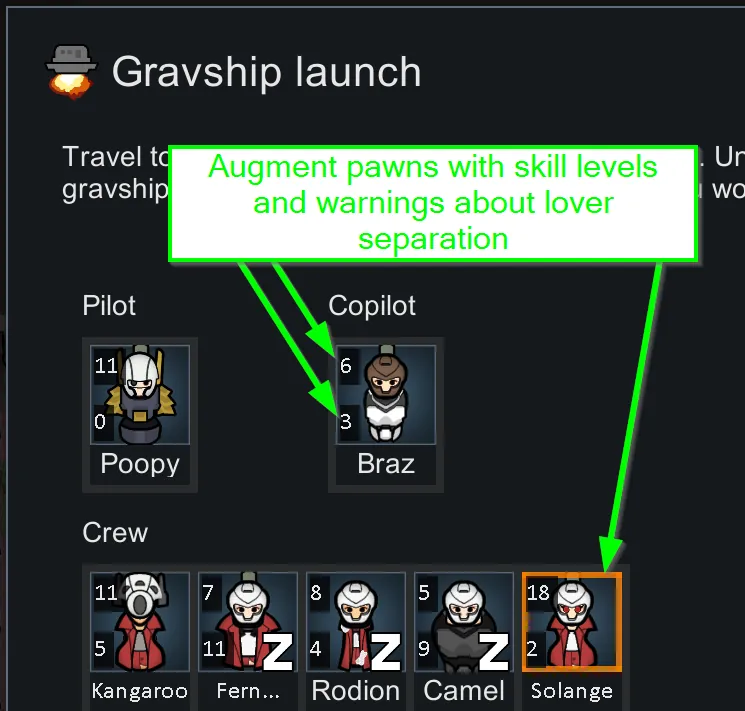 Provides extra info about your colonists to help when selecting the crew for your Gravship launch.