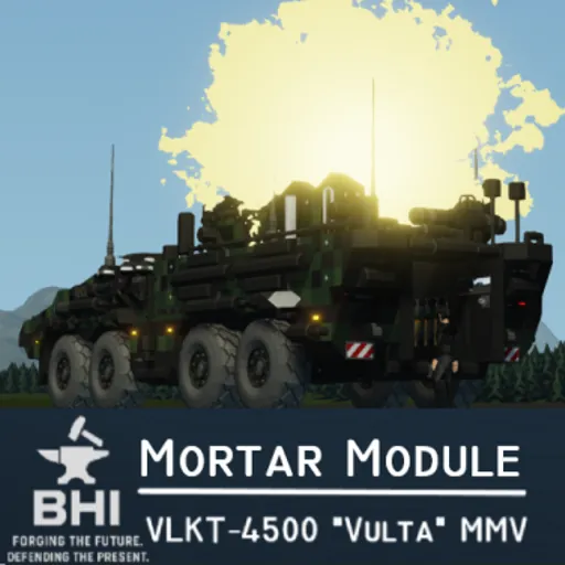 The [b]Mortar Module[/b] equips the VLKT-M-4500 "Vulta" with a rapid-deployment indirect fire capability, allowing units to deliver precise high-explosive fire support without relying on fixed artillery positions.