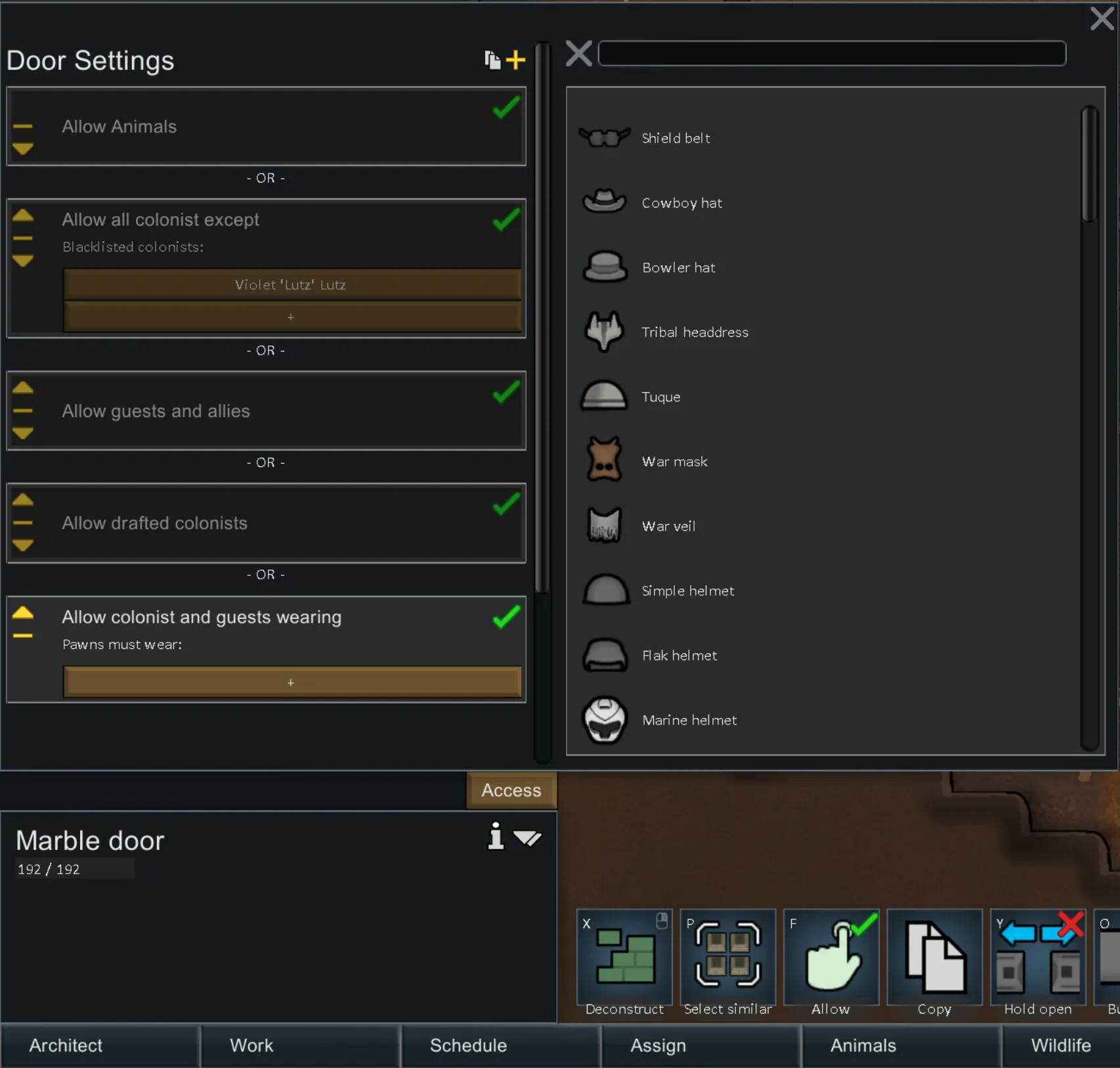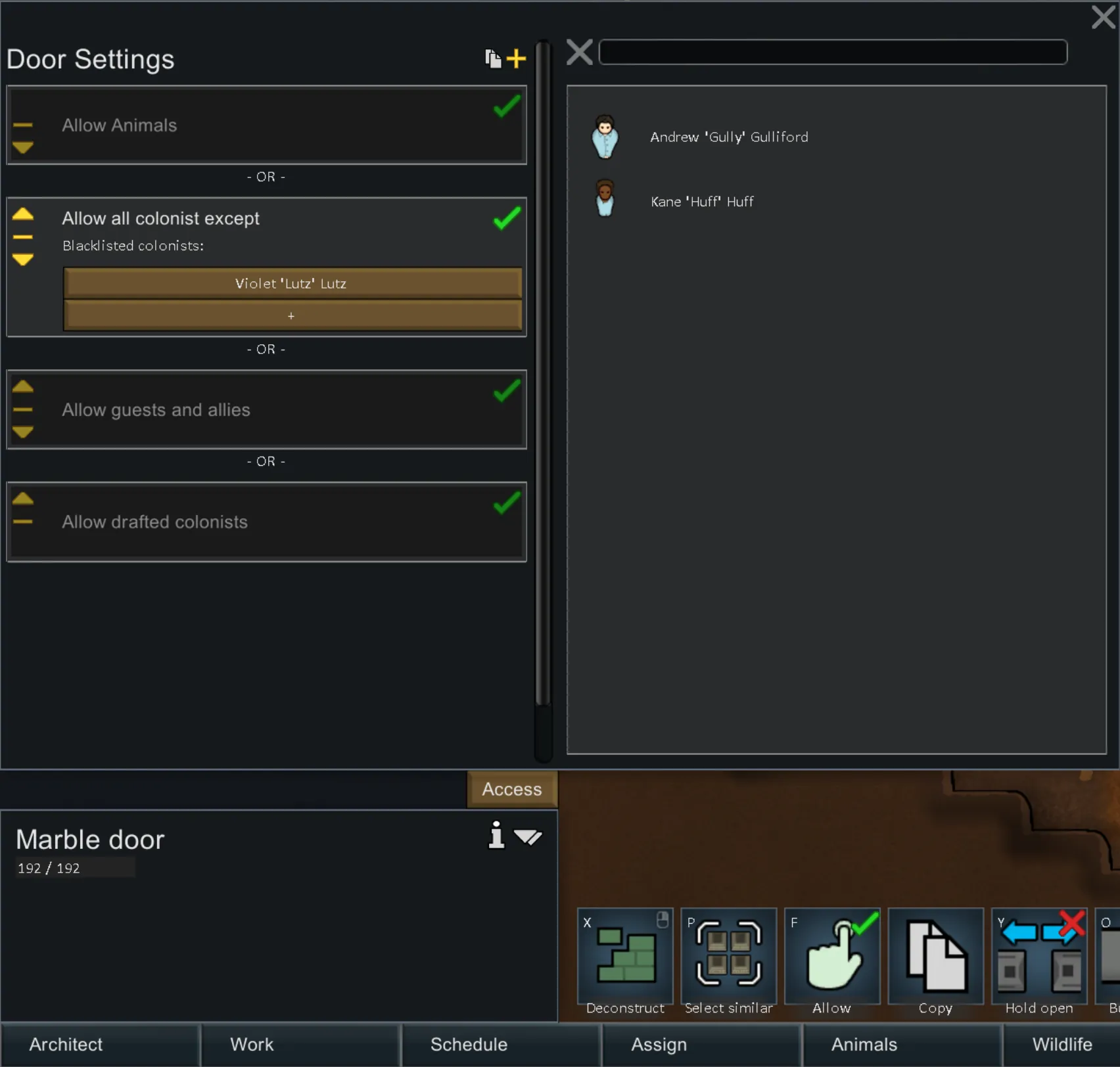 [*] Provide access control for colonists (whitelists and blacklists).