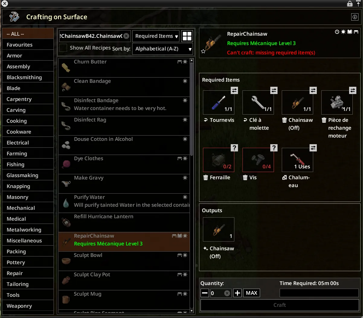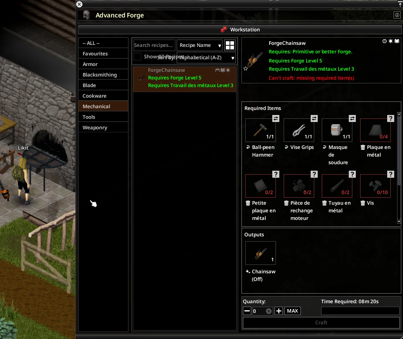 - Craftable at a forge (Blacksmith 5, MetalWelding 3 required)