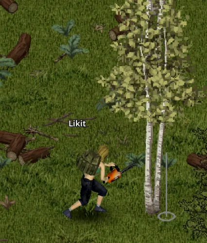 - Hold right-click while running to cut trees or attack zombies