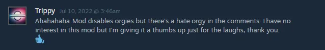 I have somehow made a Mod that generates so much raw, screeching butt hurt that Valve thinks there shouldn't be comments on it.