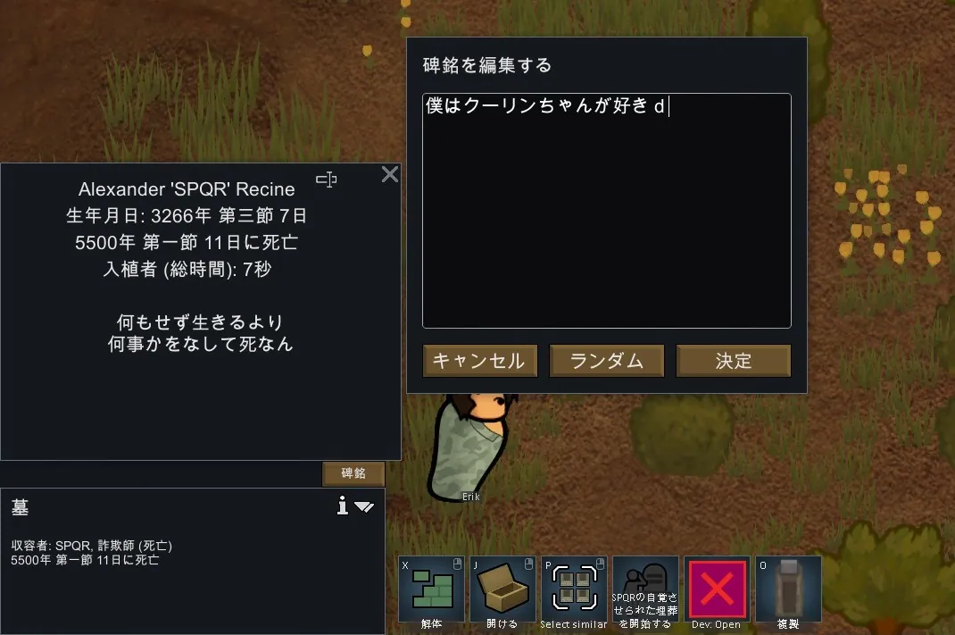 墓に添える碑銘をゲームに追加します。