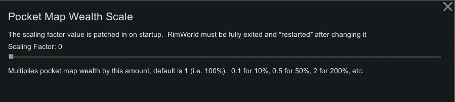 Scales the wealth for pocket maps by a configurable amount, when calculating the parent map wealth. Pocket maps are things like ancient bunkers, anomaly pits, etc.