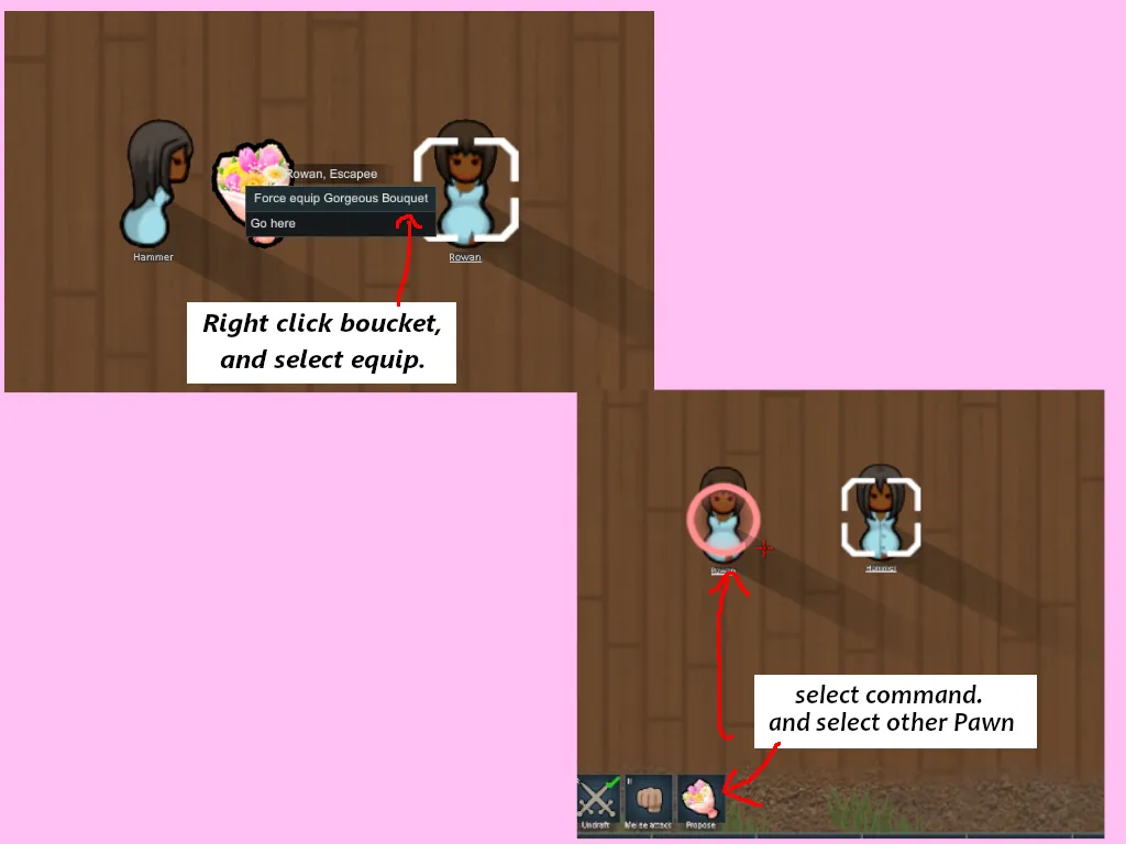 Bouquets can be equipped and used in the Utility Slot, and can be used to actively perform a proposal or romance.