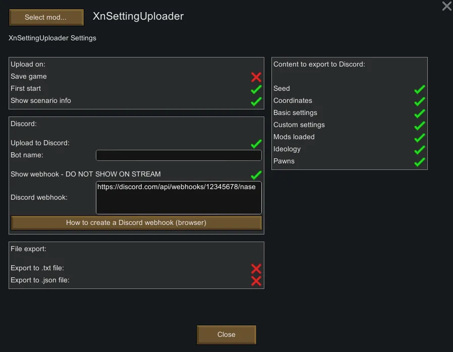 Game setting uploader to Discord or to File.