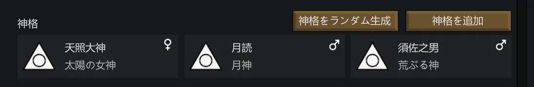 元のMODでは、神道の神として風神雷神や七福神など、民間信仰の神が取り入れられています。