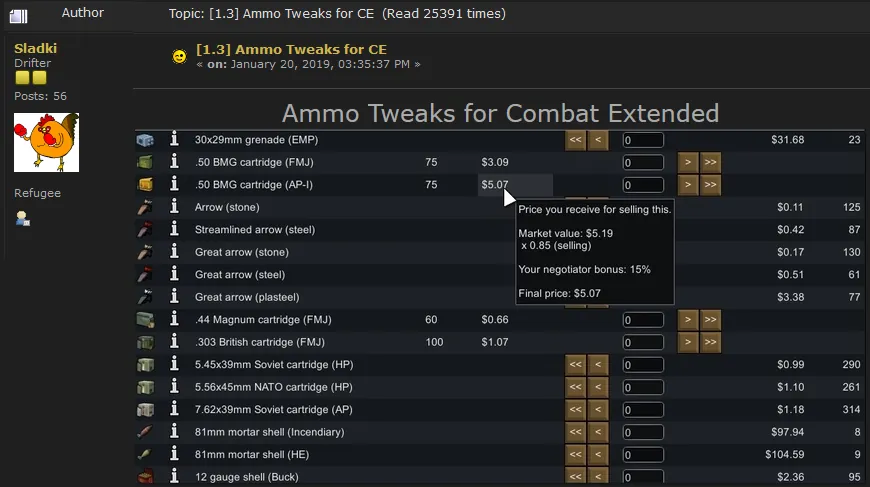 - Ammo is like a currency. There is no minimal price (0.50$) on it, trade multiplier is 15% (instead of 40%).