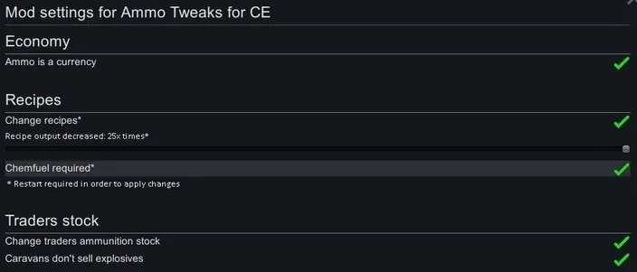 Changes ammo crafting recipes, traders ammo stocks, ammo economy.