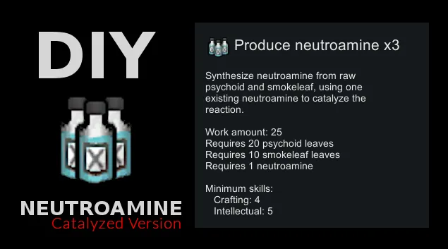 I have two other neutroamine-crafting mods, which you can find on my workshop page. They are similar to this mod, except that they do not require neutroamine as an ingredient.