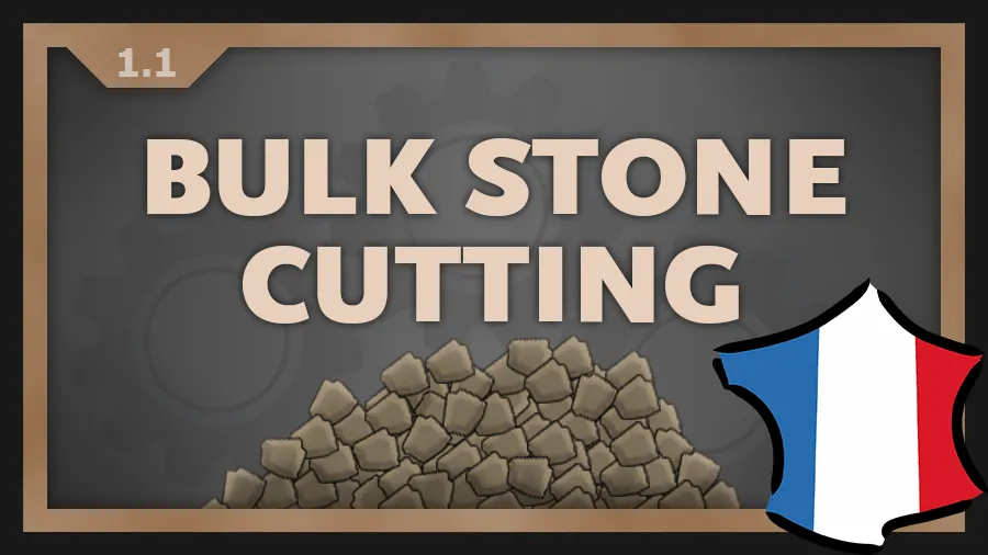 Traduction française du mod : Bulk Stonecutting. Ajoute des nouvelles recettes à l’établi de tailleur de pierre pour tailler 3 gravats à la fois.