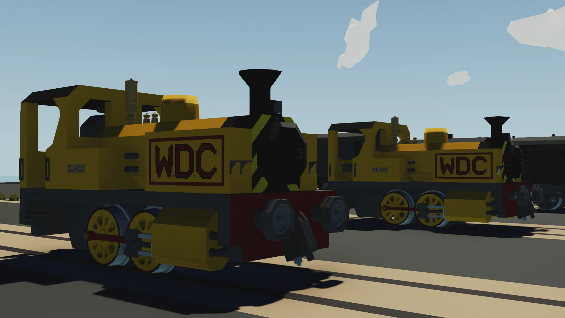 Clack, and their twin Click, are a pair of wing tanks who were built to work for the Warner Dockside Company, shunting rolling stock around the busy harbor. They've never been outside of the harbor.