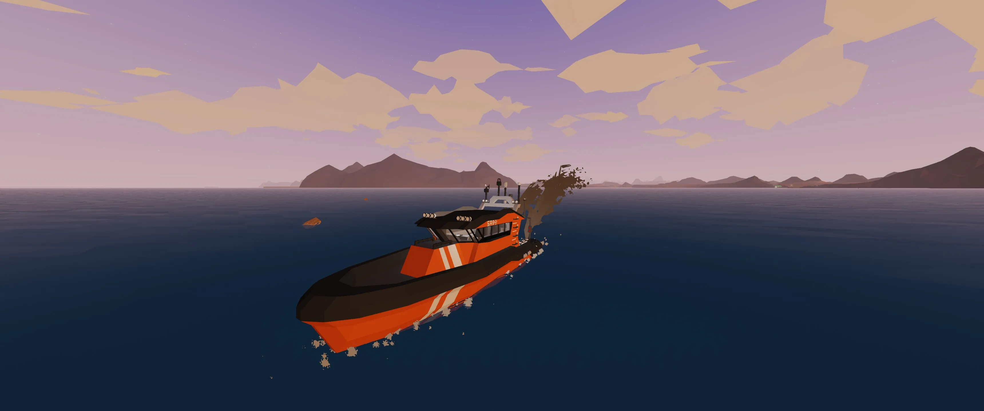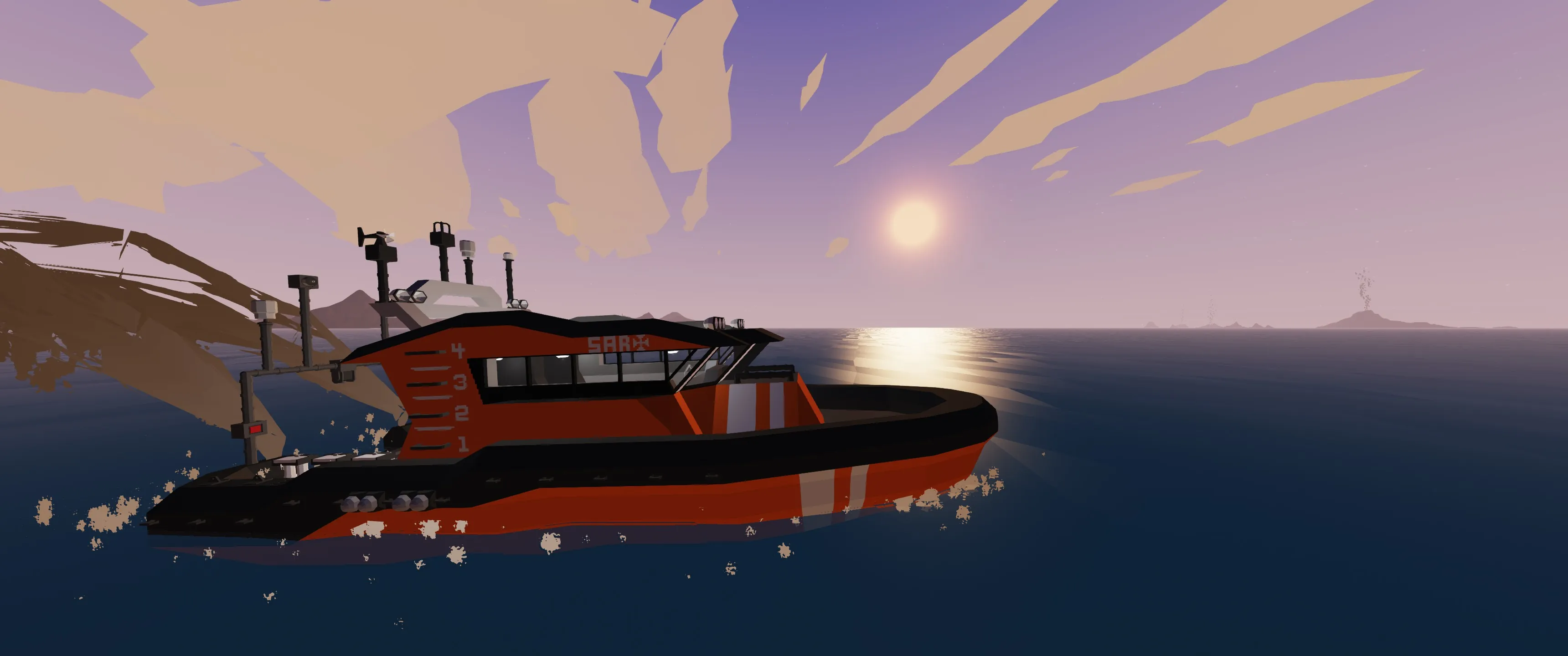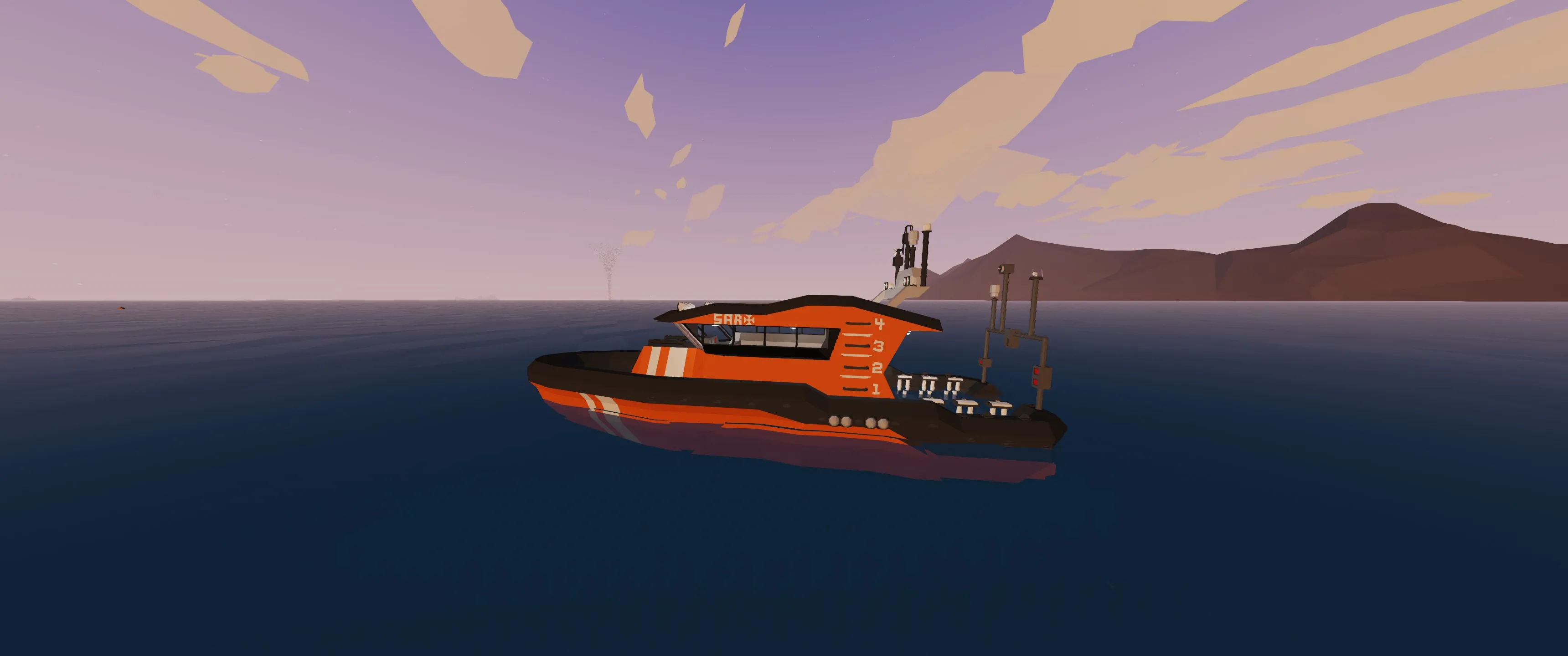 It's a fast-responding SAR boat with a capacity of up to 9 people. It's meant for solo players but can be used by a party of up to 4. It is easy to use and only uses vanilla Stormworks items.