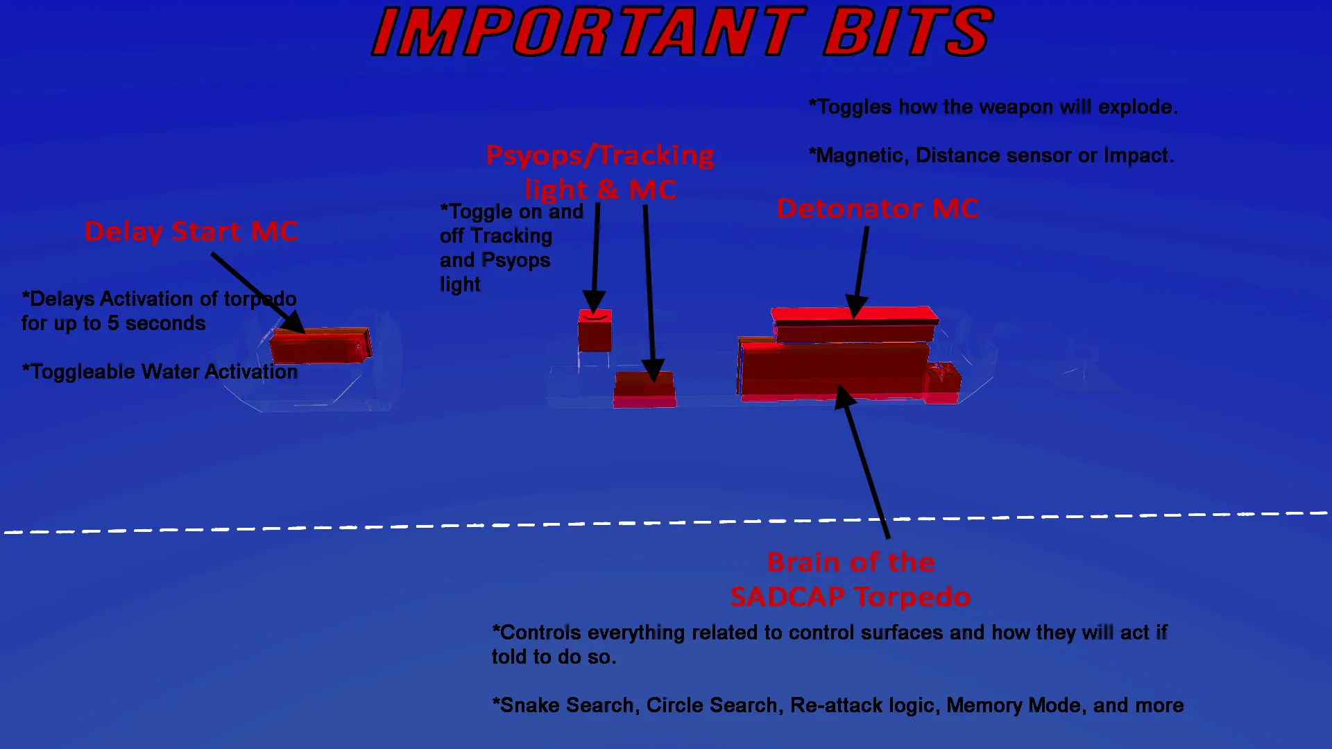 Y axis Attack: This torpedo features an extra Deprecated Sonar for Y axis attacks against underwater objects. It replaces the medium sized warhead on the old SADCAPs.