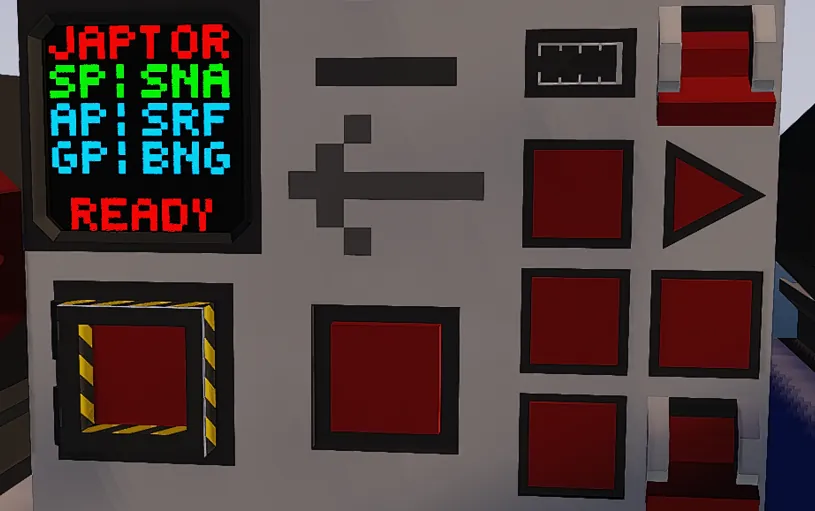 Programmable Interface: Unlike the old SADCAP Torpedoes (links below), the JAPTOR, once attached to a hardpoint, has its own Interface using a 1x1 monitor and two instrument panels with some stuff on it that is mostly for show and "realism". More info below.