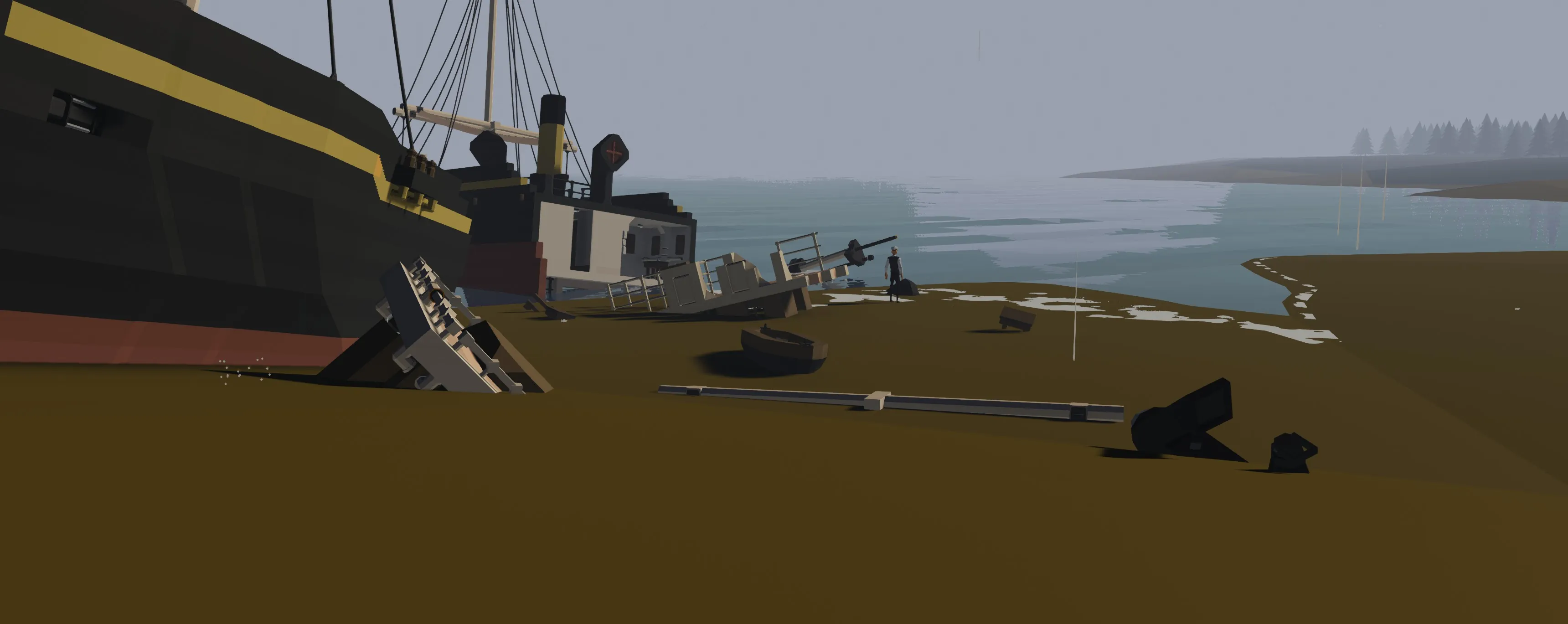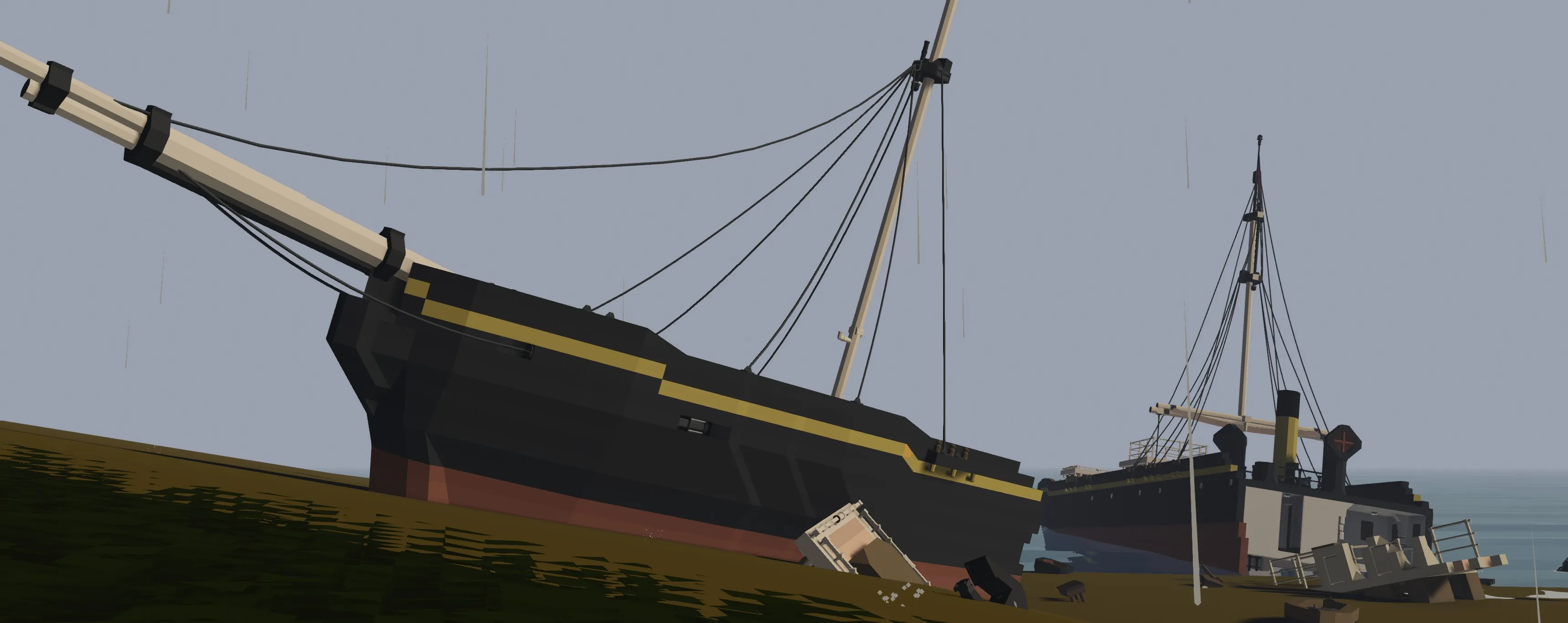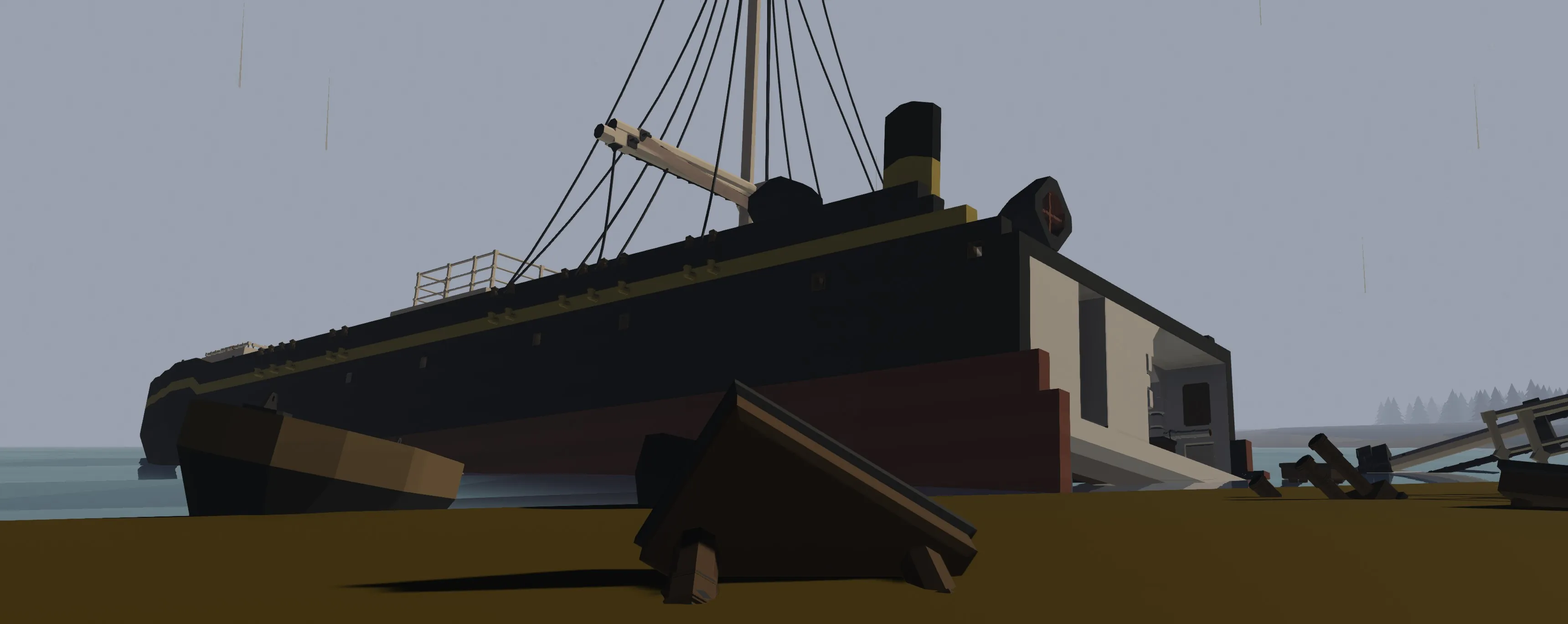the S.S Mar wrecked in september 1959, While salvage plans were being laid the waves broke her in two in december 1959, This model represents the wreck in Janurary 1960. Her bow interior's were heavily looted, while her aft interiors were a little looted, due to being less accesible,