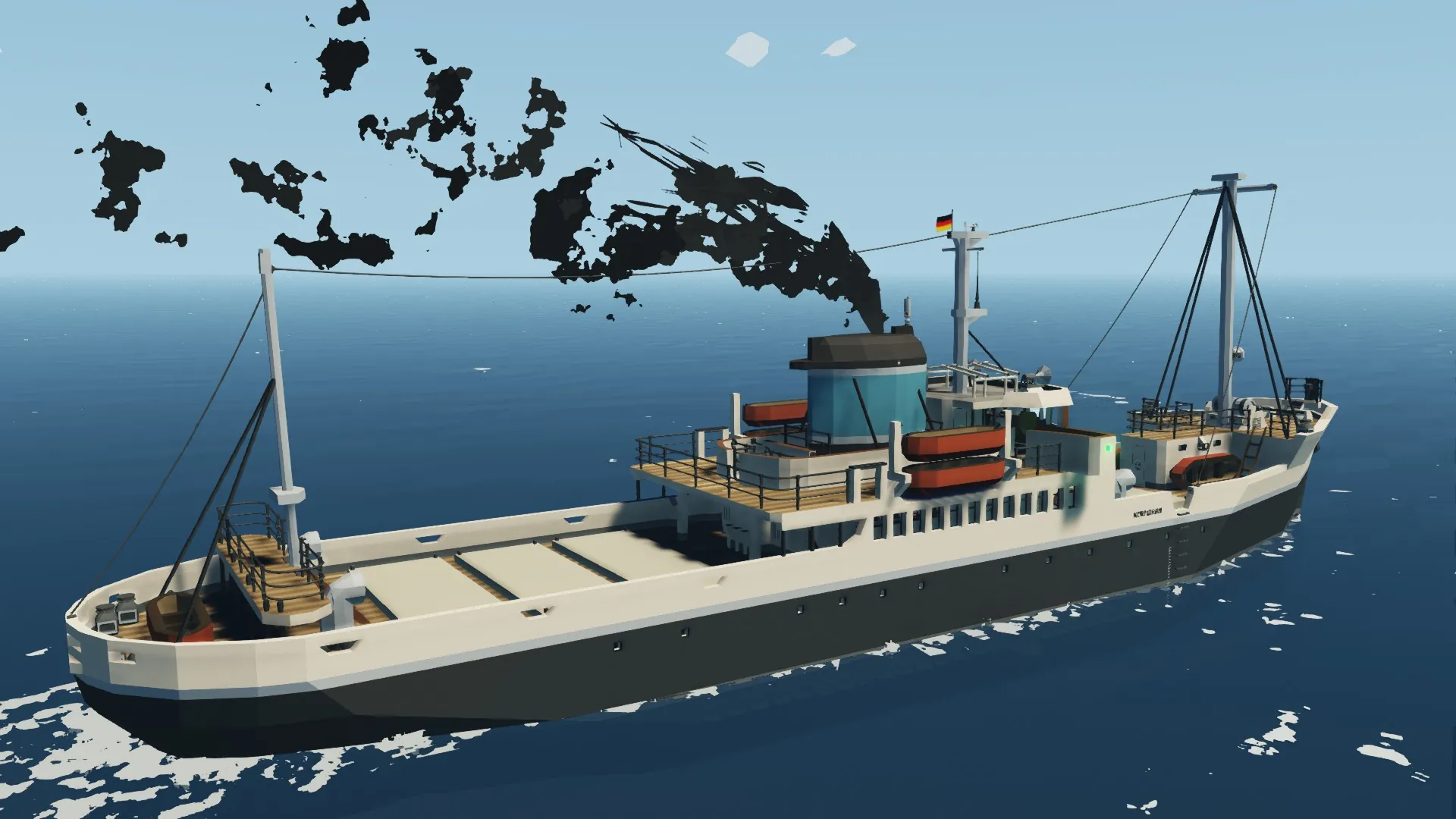 A sister ship to the SS Stier, has most of the same features, but has a coal boiler instead of diesel, and is made to look appropriately older for a coal ship.