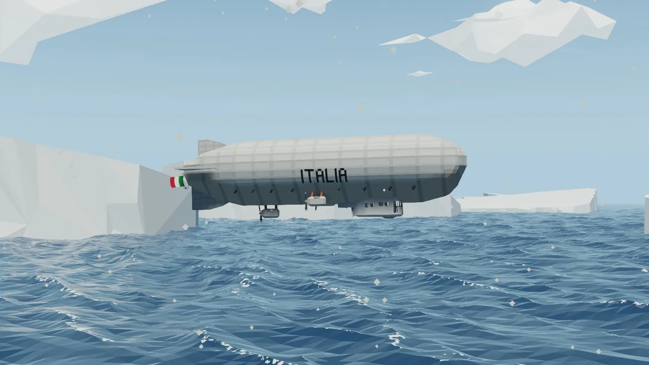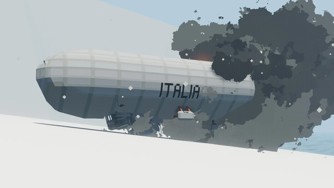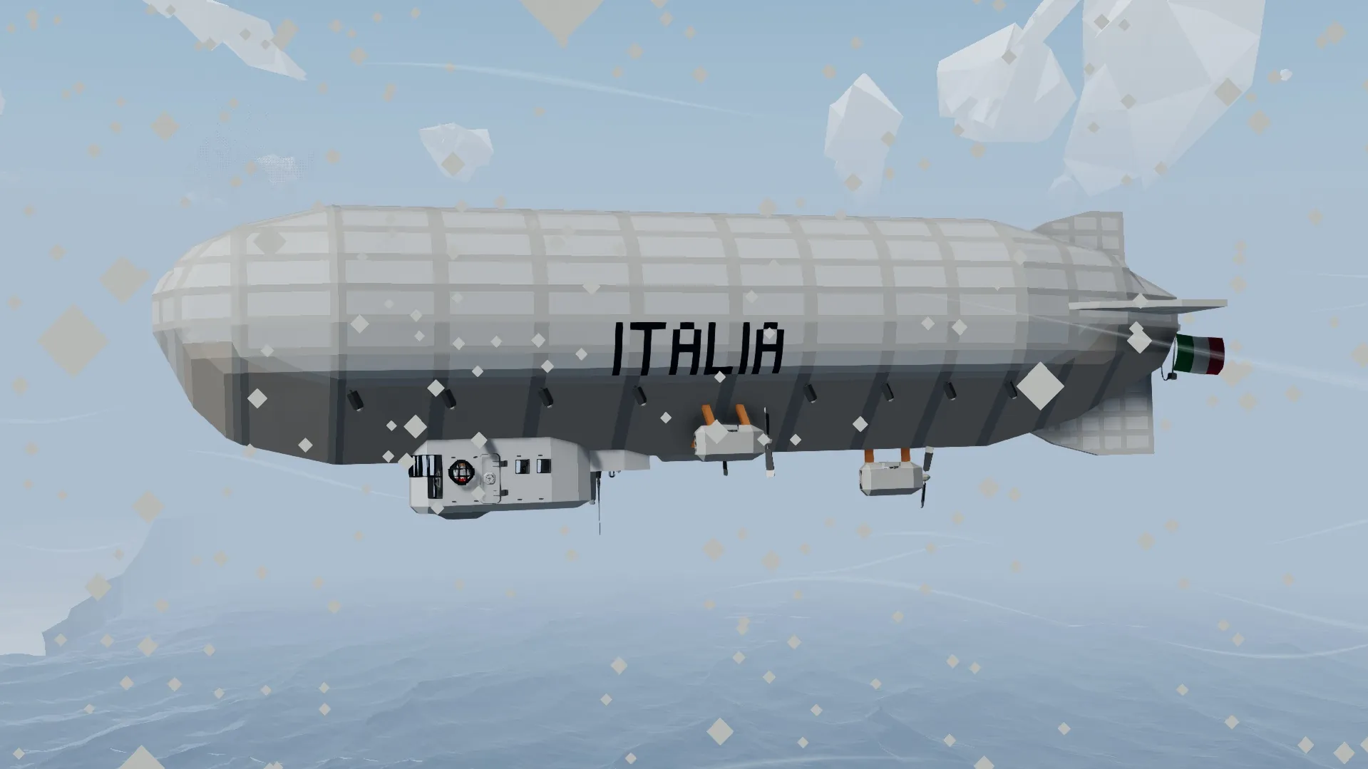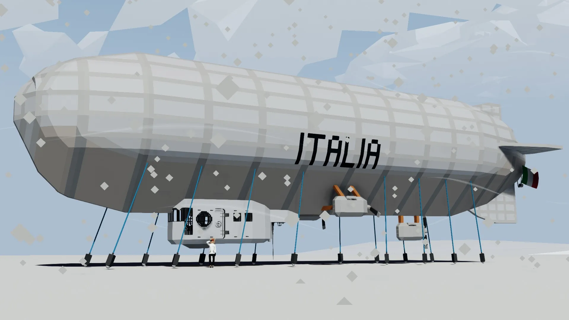 "Italia" was a semi-rigid airship designed by the Italian airship builder Umberto Nobile, on which he later set off on an expedition to Spitsbergen with a team of 16 people from all over Europe. Unfortunately, on May 25, 1928, on the way back to Kings Bay, a hydrogen leak occurred, causing the airship to rapidly lose altitude. The strong impact tore off the aft engine nacelle, killing the mechanic. Due to the strong shift in the center of mass, the airship tilted forward and dragged the nose nacelle for 50-100 meters, after which it tore off. Due to the sudden loss of a large amount of mass, the envelope rapidly flew upward to the east with half of crew members on board. They are still listed as missing. This disaster ended relatively well, as a month later the survivors were rescued by the Soviet icebreaker «Krasin». I highly recommend watching the 1969 Soviet-Italian film «The Red Tent», which describes those events.