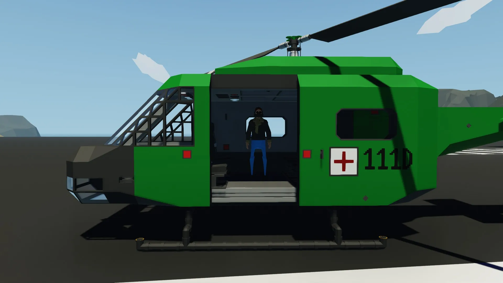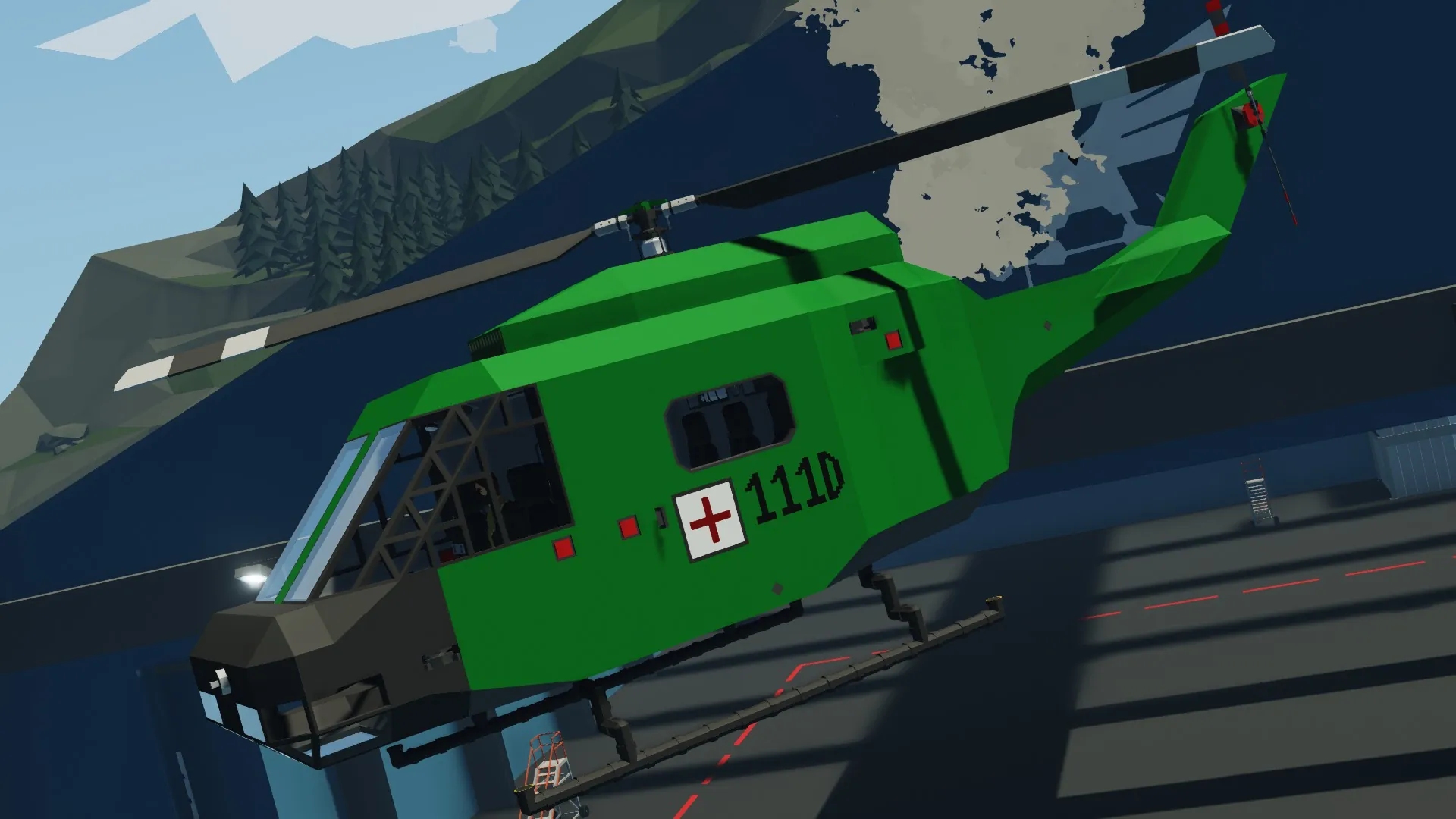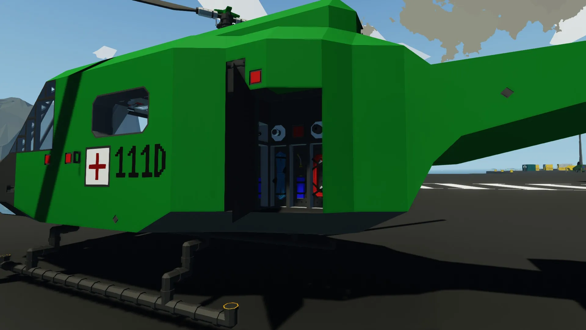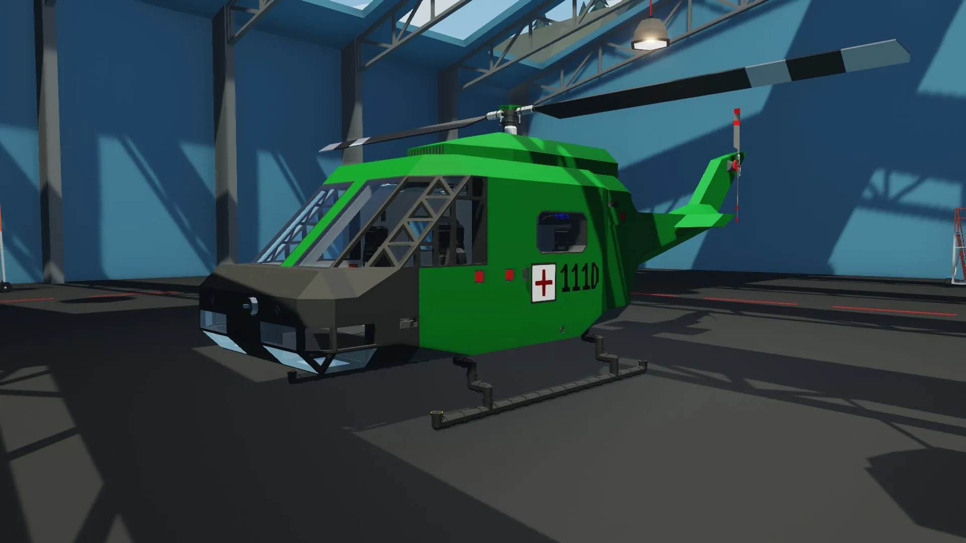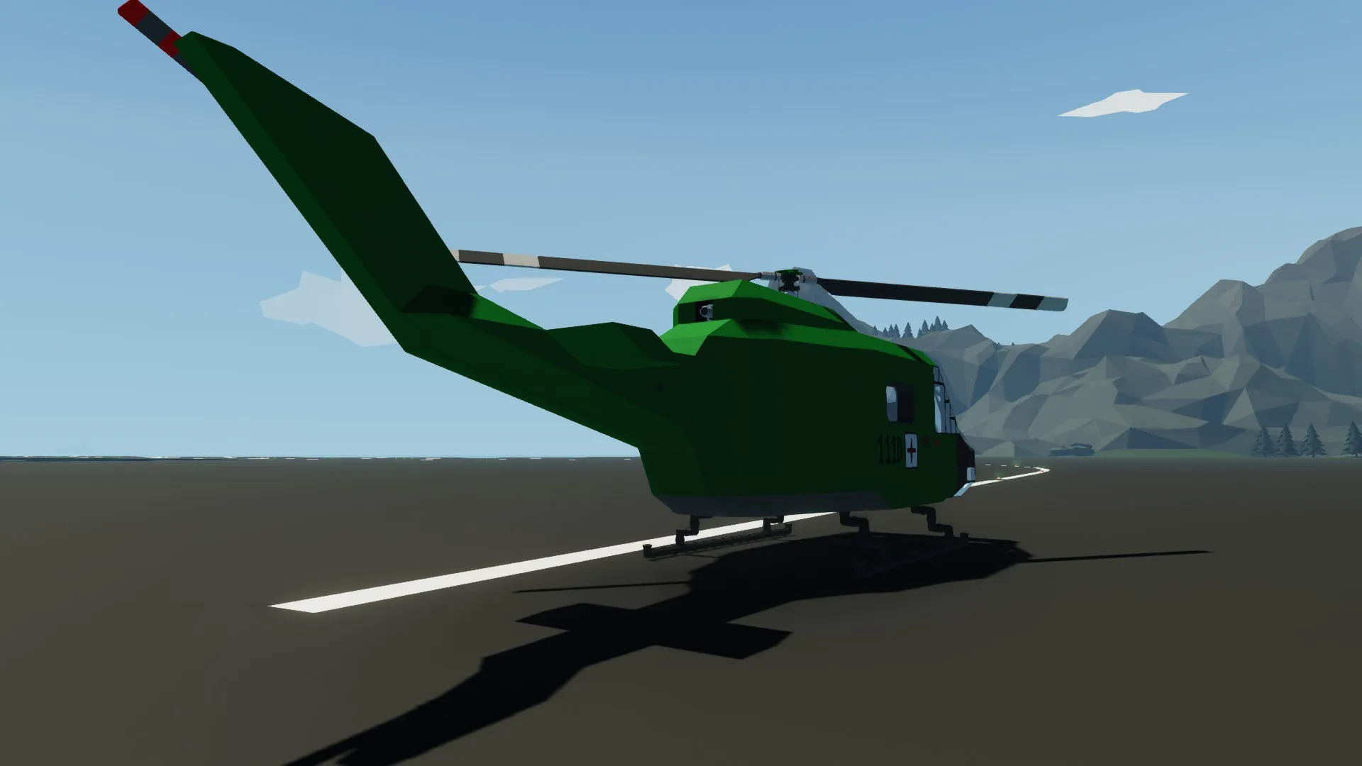 A small rescue/exploration helicopter sampled from an UH-1D. It is cheap, reliable, stable, but also not really fast and the paint is bad, i am not good at painting.