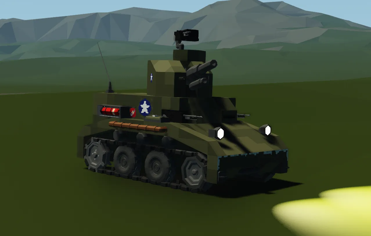 A very light tank based on the M2A2. This tank is not really recommended for battle, aka this tank ain't tanky (it can't even survive one hand-grenade). this tank is so small I classify it as a "rat". It has a armament of 3 .30 caliber machine guns and a main 37mm gun. speed is 61 KMH max and armor is 25mm. yeah so good luck bro fighting with this...
