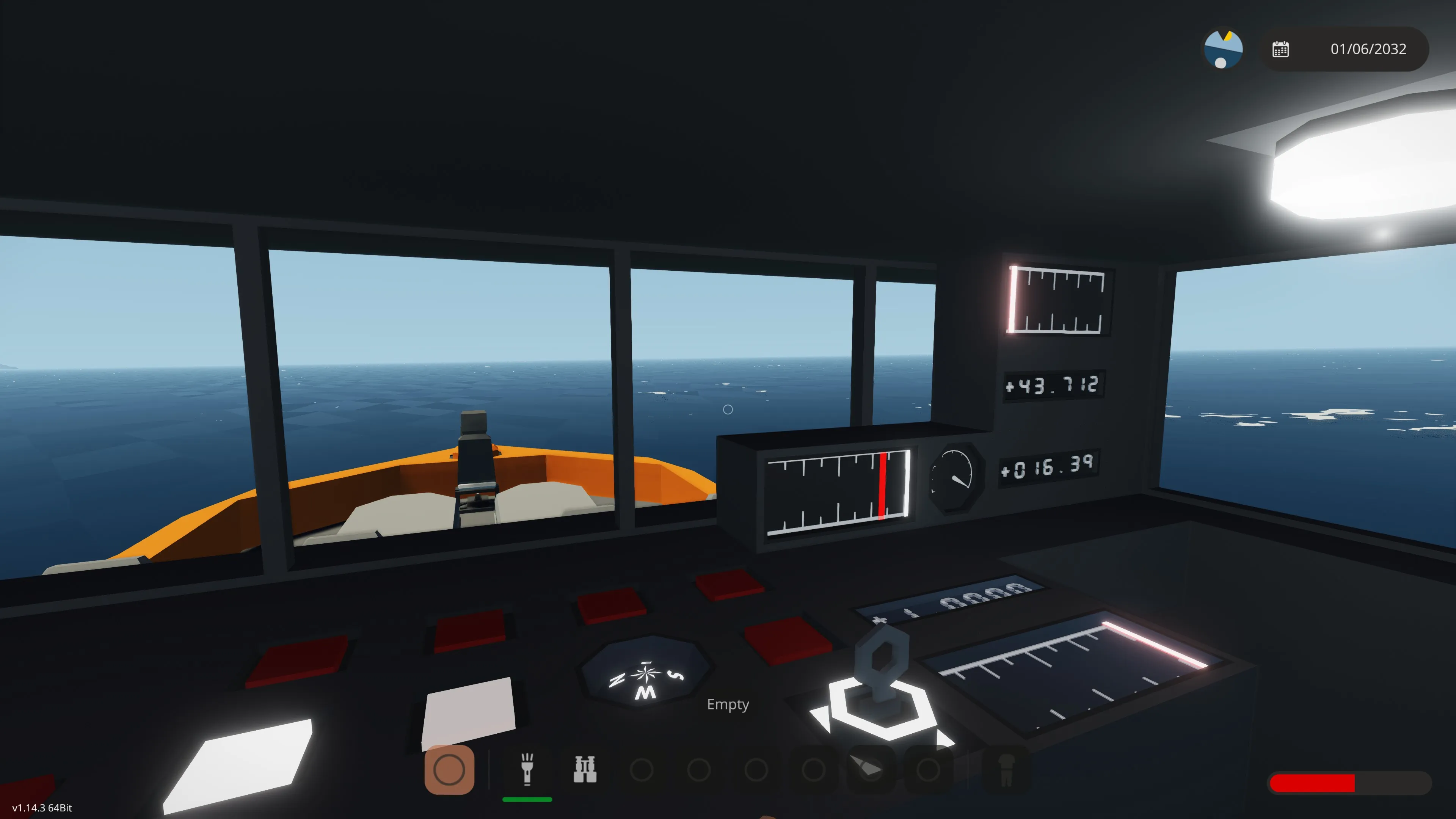 Fully automatic clutches, water cannon control from bow or from helm, monitoring of fuel levels, battery voltage, rps, and speed in km/h, huge winch with depth sounding device!