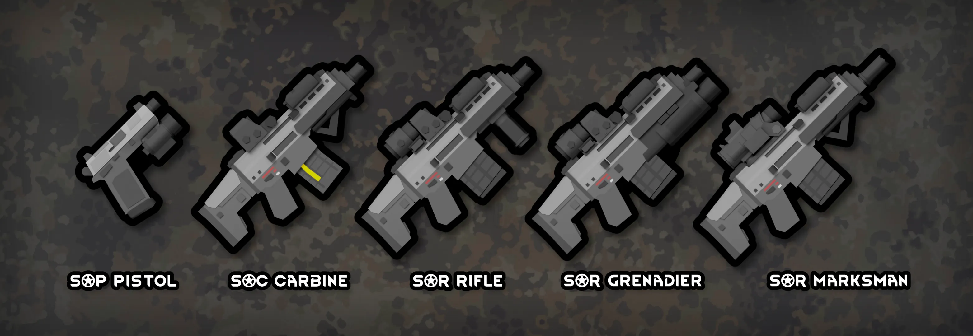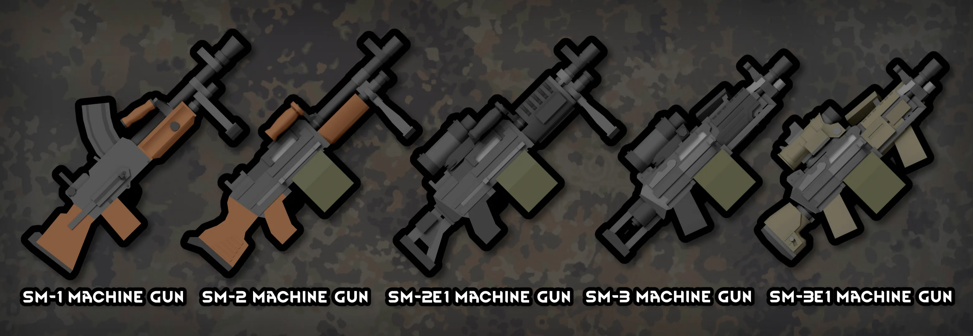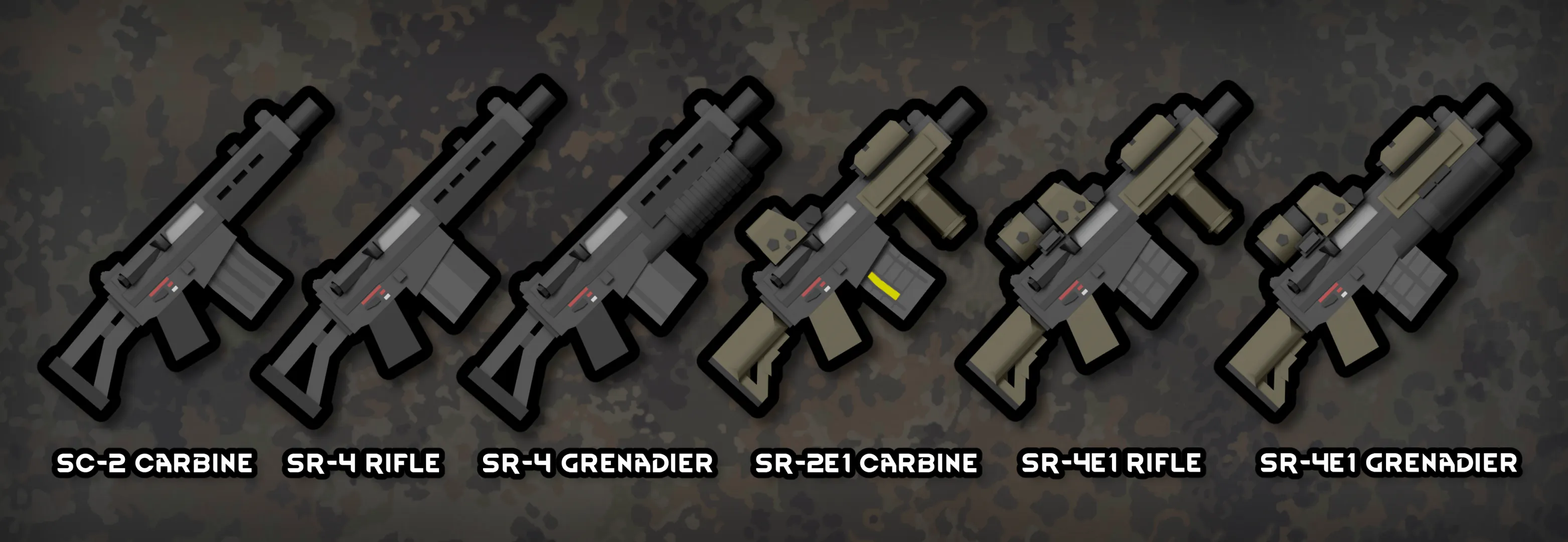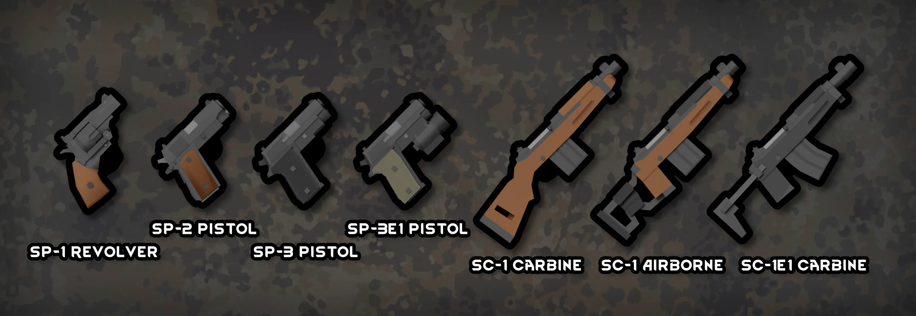 This mod adds 5 pistols, 6 carbines, 13 rifles and 5 machine guns. 3 of the guns comes with toggleable grenade launcher function utilizing the Morph Gun mod's system.