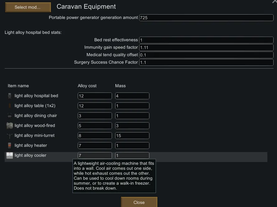 Adds new lightweight stuff for caravans aimed at players using the Setup Camp mod.